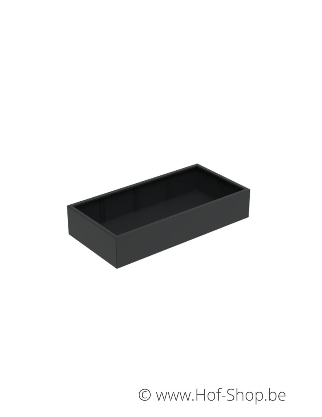 Sous la jardinière, des pieds sont soudés à une hauteur de 15 mm afin que le bac à fleurs soit légèrement décollé du sol. De cette façon, l'eau (via les trous de drainage) peut facilement s'écouler au fond. Les jardinières ne sont pas étanches en mode standard.
