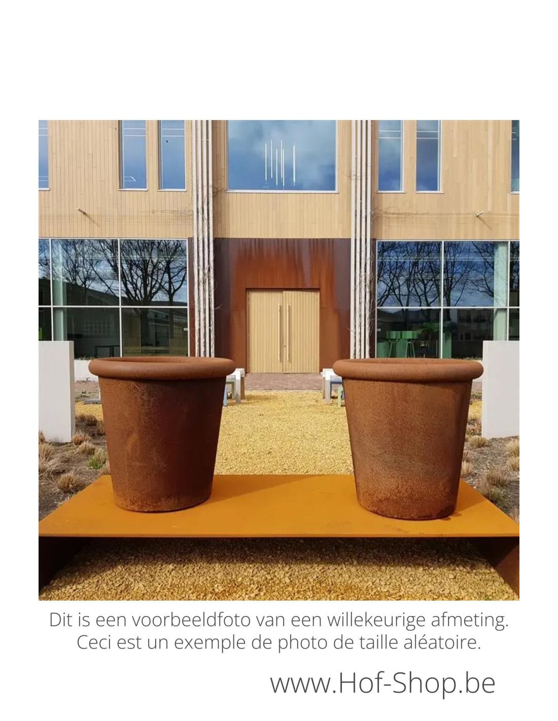 Les produits en acier Corten sont livrés non rouillés. Le processus de rouille prend 4 à 5 mois. La rouille peut être traitée en appliquant le vernis pour acier Corten Rustfix (lorsque le processus de rouille s'est arrêté).