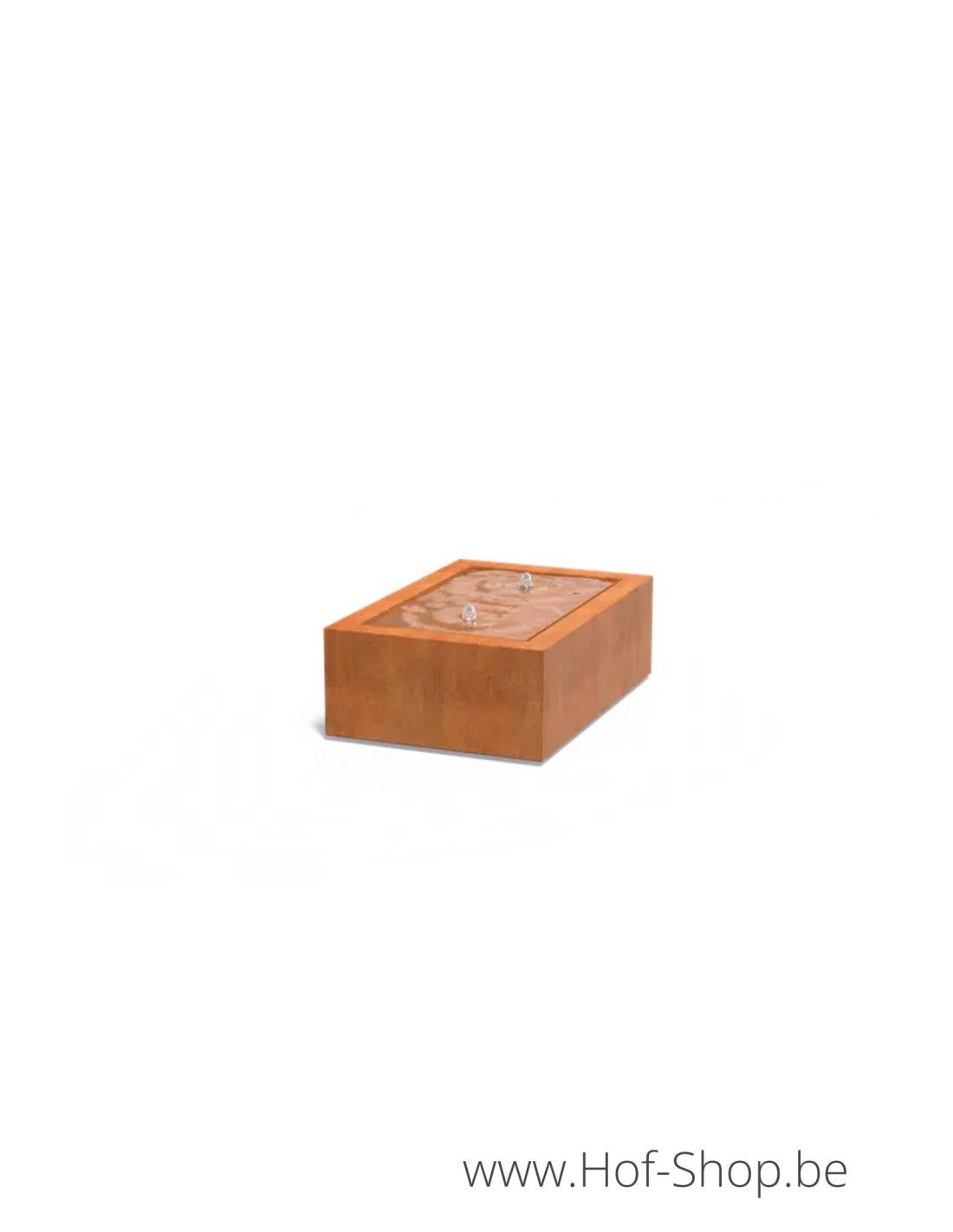 Cette nappe phréatique avec 6 fontaines crée une ambiance instantanée dans votre jardin ! C'est une pièce d'eau unique en acier Corten. L'eau bouillonne d'une buse en acier inoxydable avec éclairage LED au milieu de la plaque supérieure. L'eau s'écoule ensuite uniformément le long de la nappe phréatique dans le puisard et est ensuite pompée à nouveau.