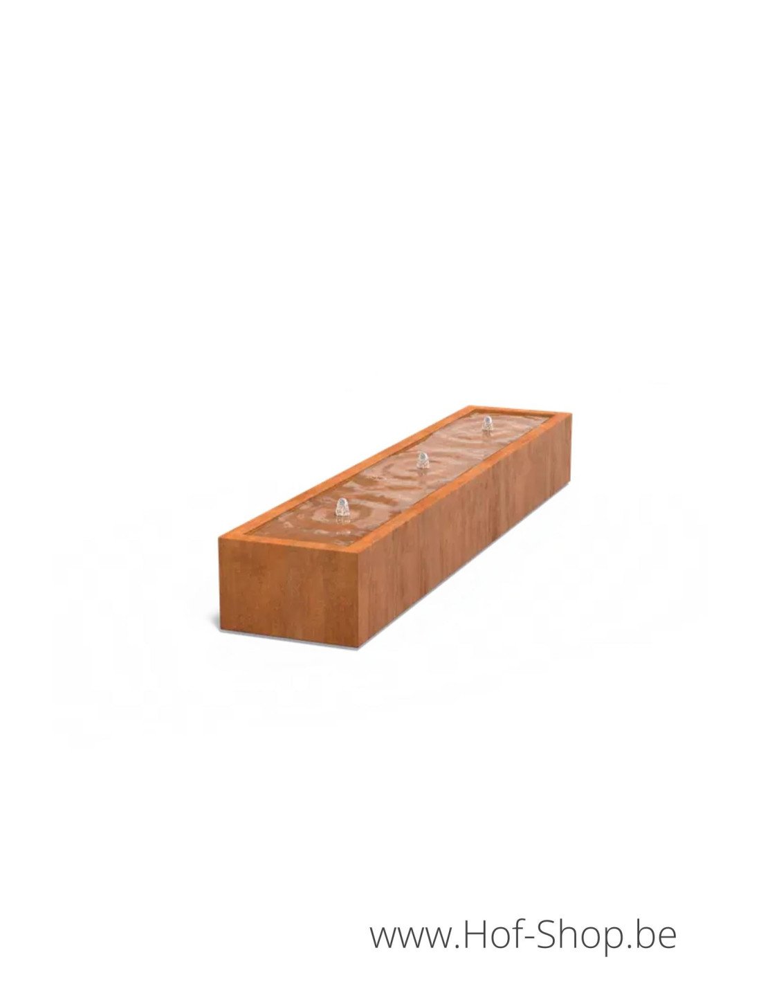 Cette nappe phréatique avec 6 fontaines crée une ambiance instantanée dans votre jardin ! C'est une pièce d'eau unique en acier Corten. L'eau bouillonne d'une buse en acier inoxydable avec éclairage LED au milieu de la plaque supérieure. L'eau s'écoule ensuite uniformément le long de la nappe phréatique dans le puisard et est ensuite pompée à nouveau.