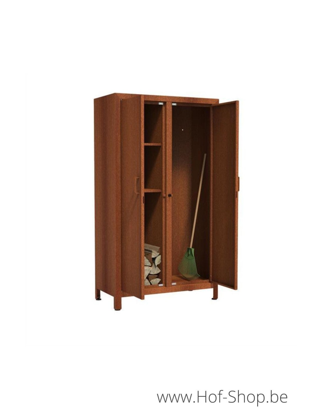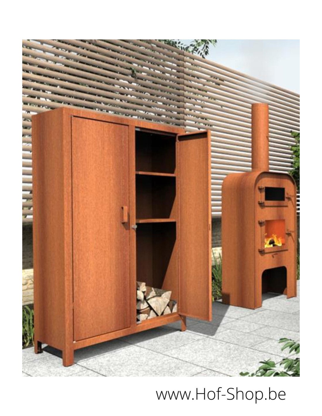Ce stockage à bois 'stockage à bois' en acier Corten est l'accroche-regard sur votre terrasse ou dans votre jardin. Il donne une touche chaleureuse et confortable et s'intègre dans n'importe quel concept de jardin : de l'élégant, moderne, classique au rural ! Grâce aux portes, tous vos matériaux de bois et de jardin sont rangés de manière pratique et invisible.