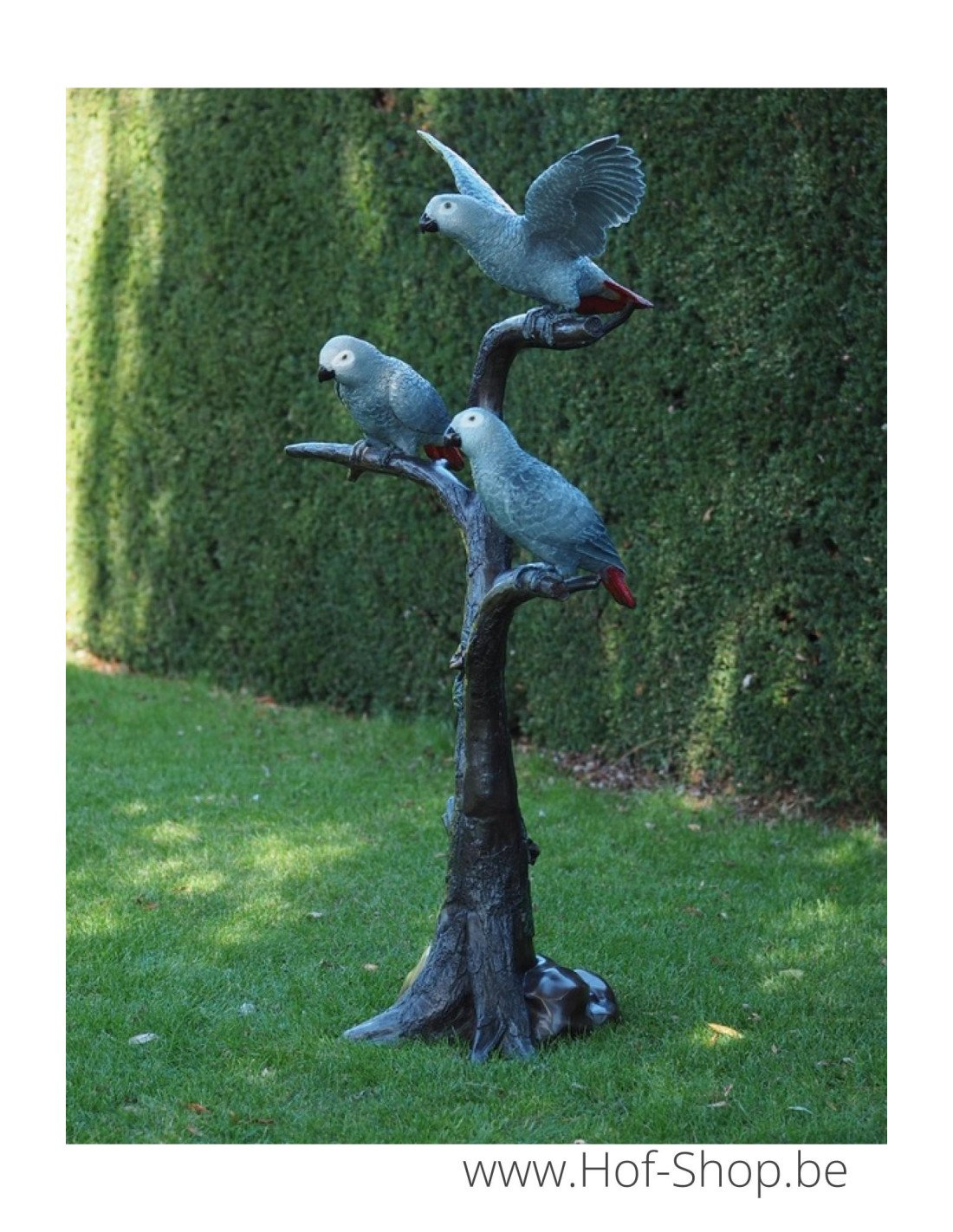 3 perroquets gris à queue rouge - statue en bronze (B1375)