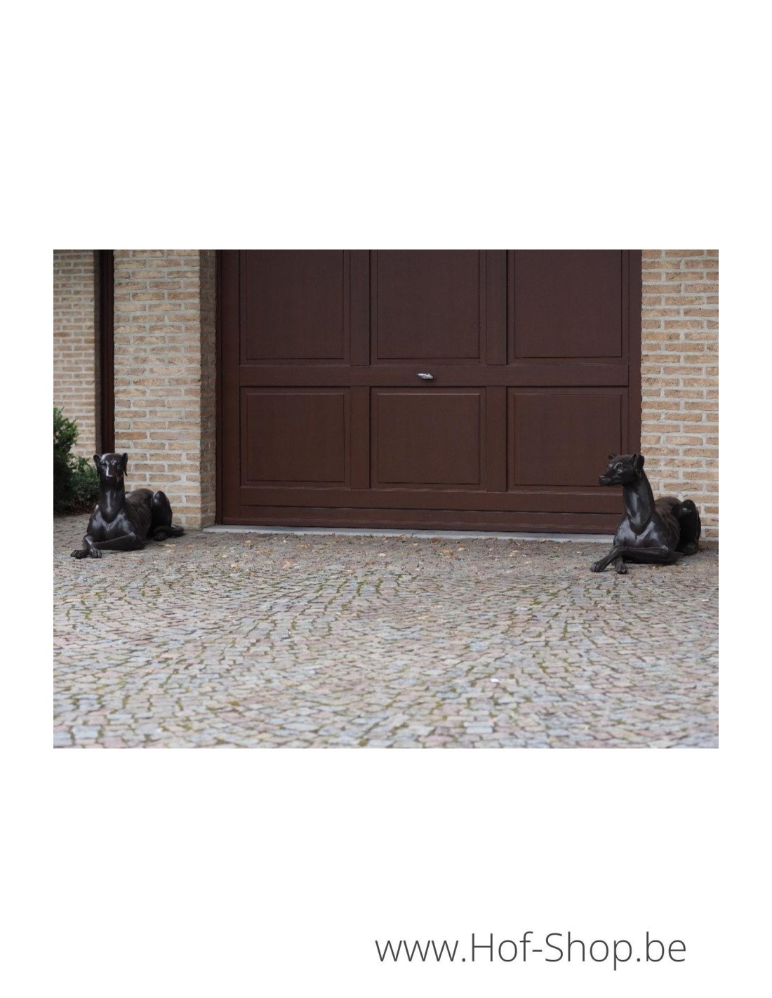 Beau chien couché en bronze. Une statue en bronze unique pour embellir votre jardin.