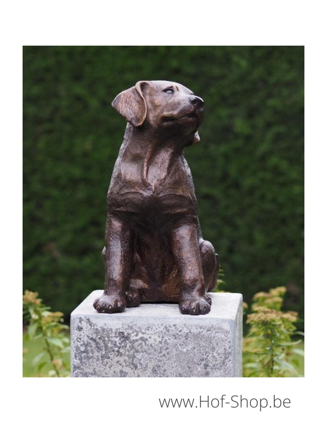 Beau chien en bronze. Une statue en bronze unique pour embellir votre jardin.