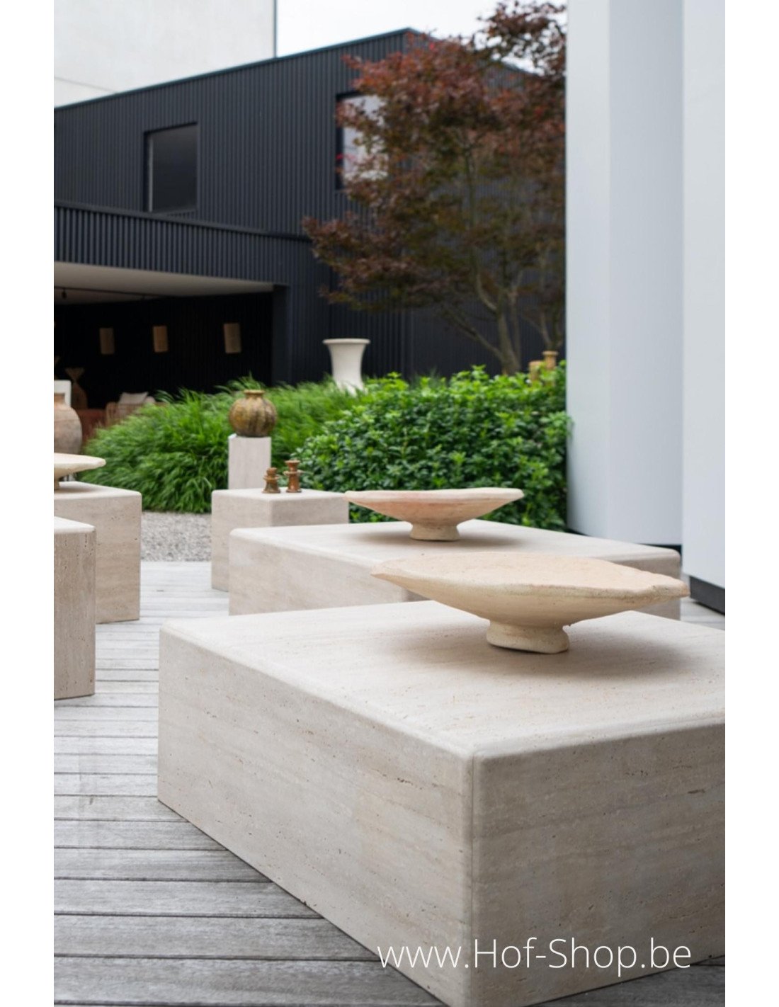 Ces cubes en pierre naturelle travertin peuvent être placés à l'intérieur comme à l'extérieur. Les utilisez-vous à l'extérieur ? Nous recommandons ensuite de les traiter annuellement avec un antitache.