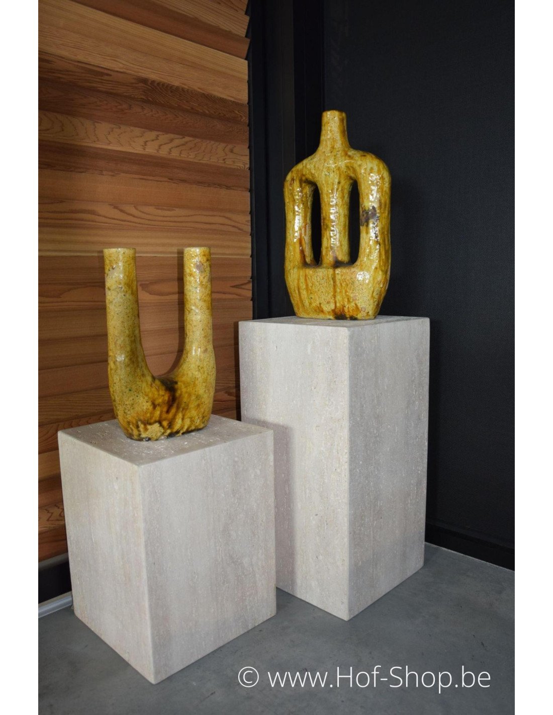 Ces colonnes en pierre naturelle travertin peuvent être placées à l'intérieur comme à l'extérieur. Les utilisez-vous à l'extérieur ? Nous recommandons ensuite de les traiter annuellement avec un antitache.