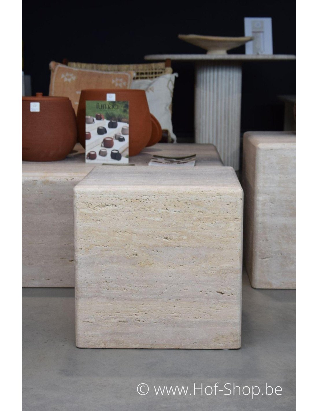 Piédestal en travertin 40 x 40 x 40 cm - Colonne Solace Living