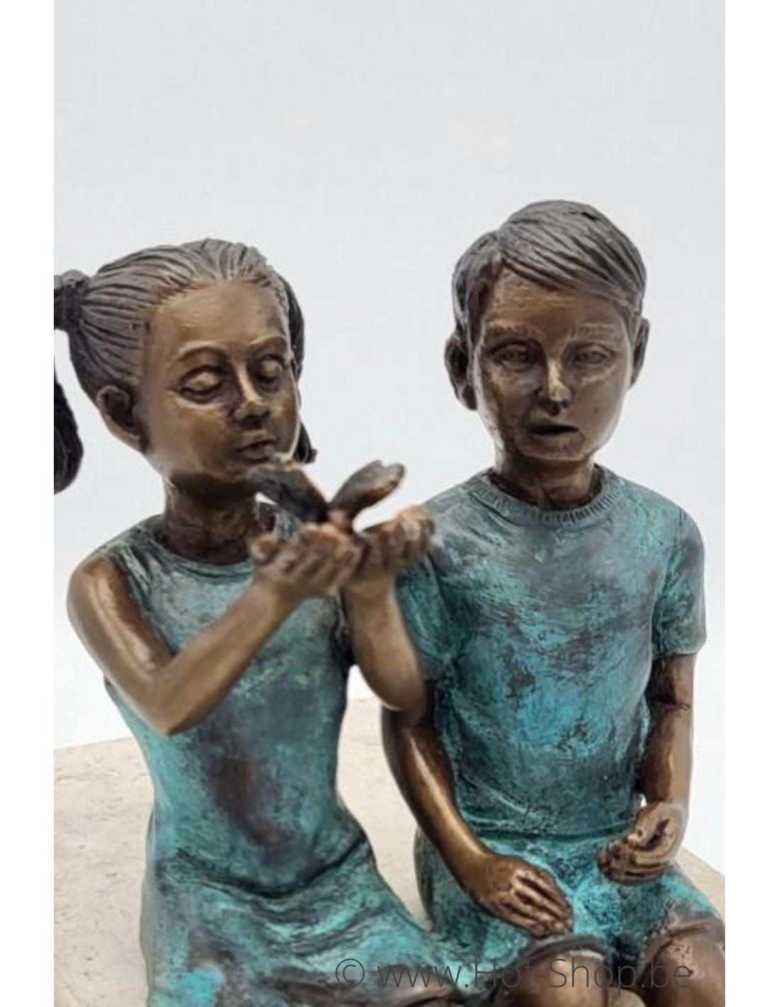 Deux enfants avec un papillon - statue en bronze (BS1493B)