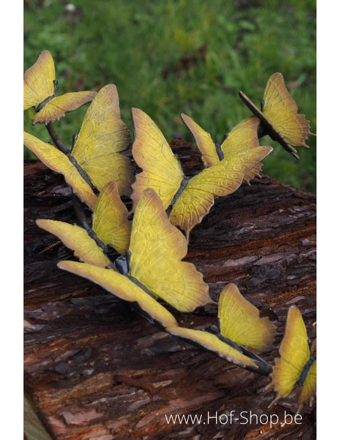 Unne belle statue de jardin en bronze représentant une essaim de papillons jaunes. Ces papillons sont fait d'une patine spéciale jaune bronze.