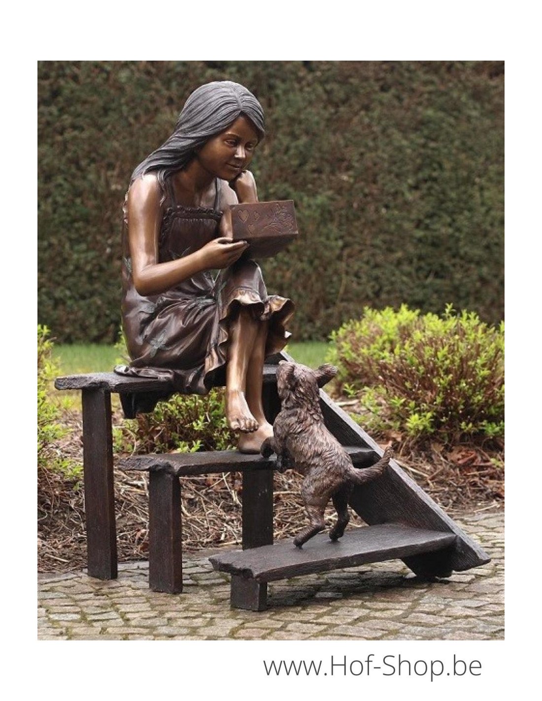 Cette sculpture de jardin est une statue en bronze magnifiquement détaillée d'une jeune fille lisant dans un escalier.