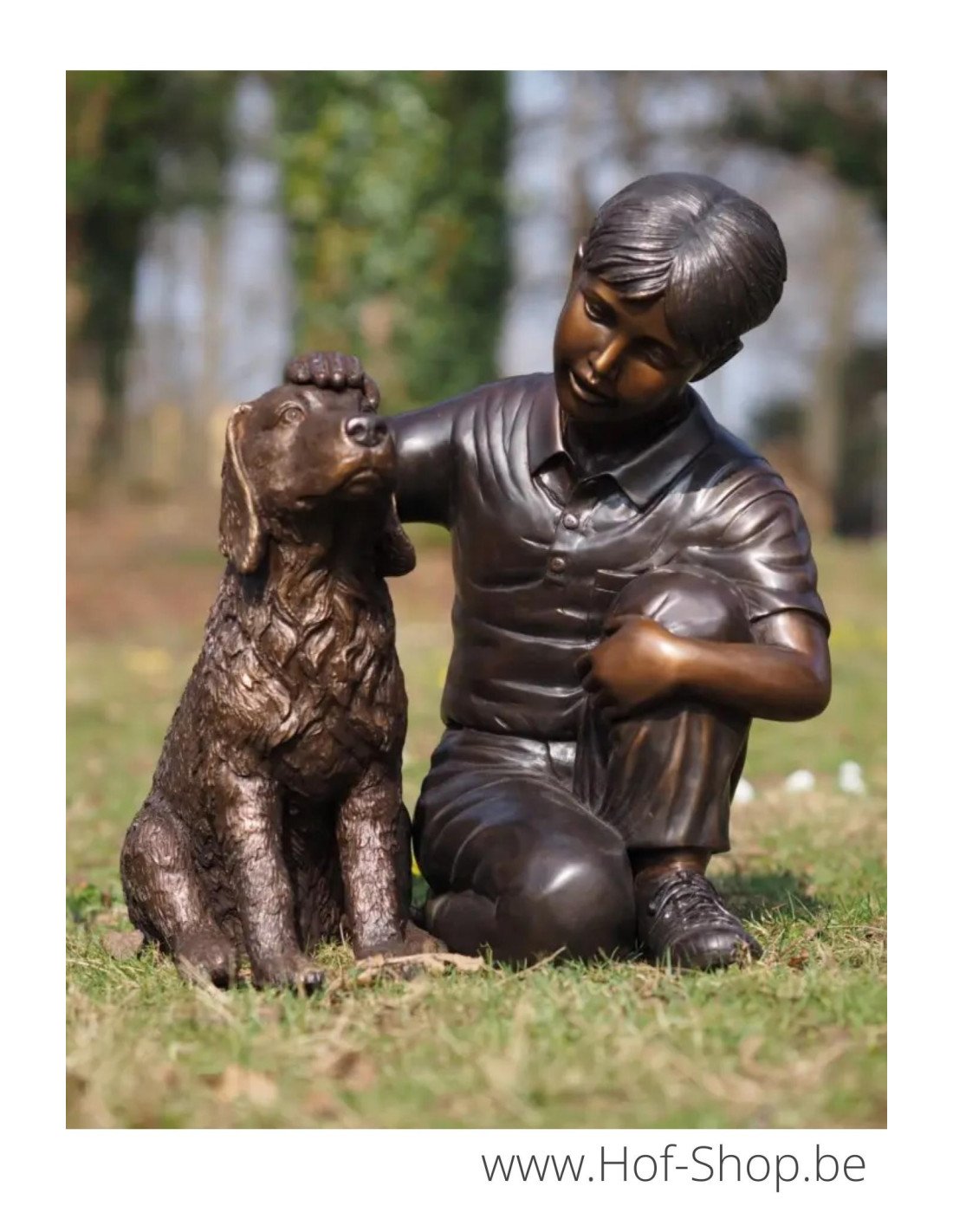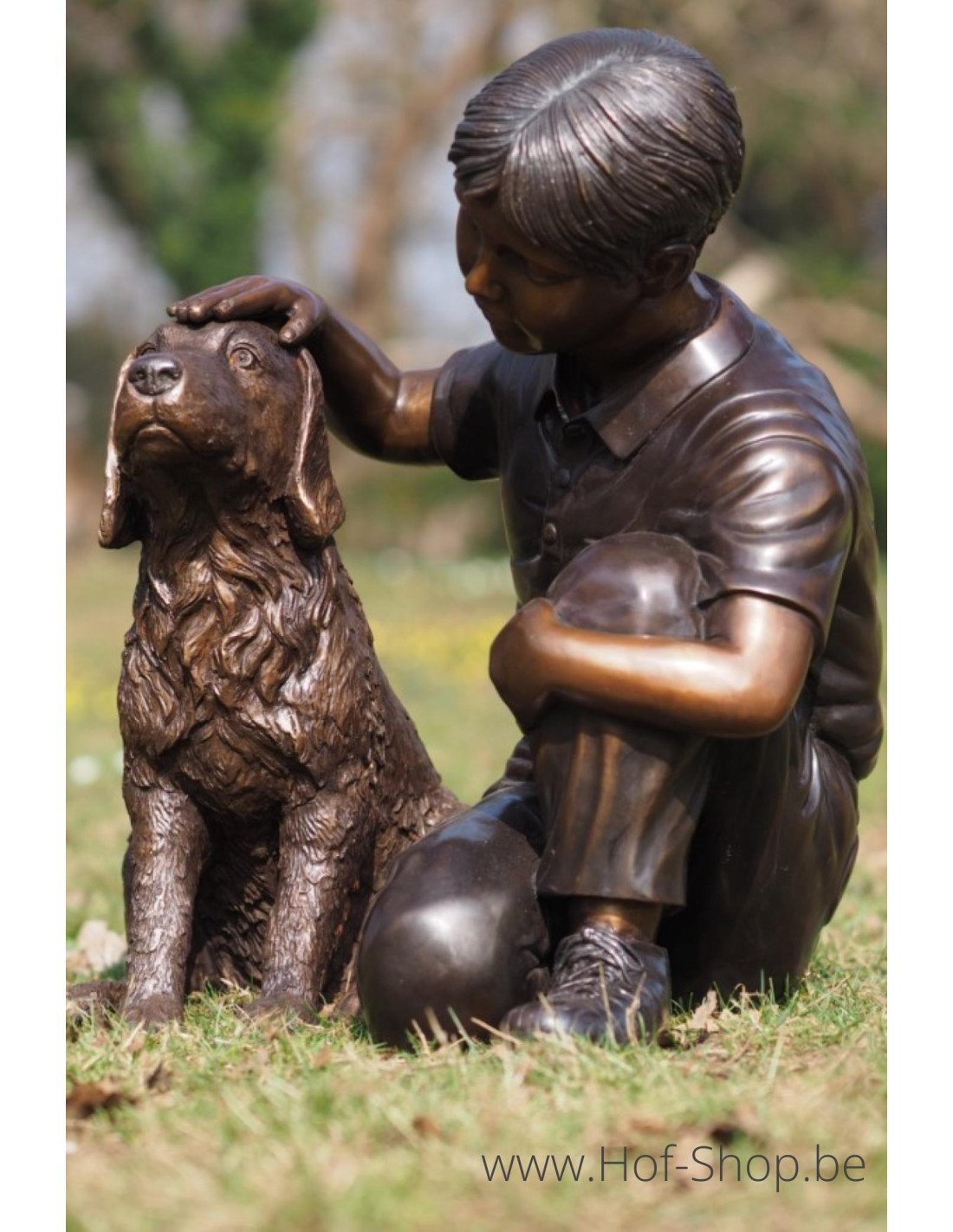 Garçon avec chien - statue en bronze (B1518)
