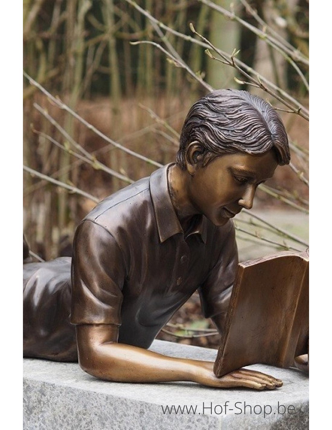 Garçon couché lisant - statue en bronze (B1223)