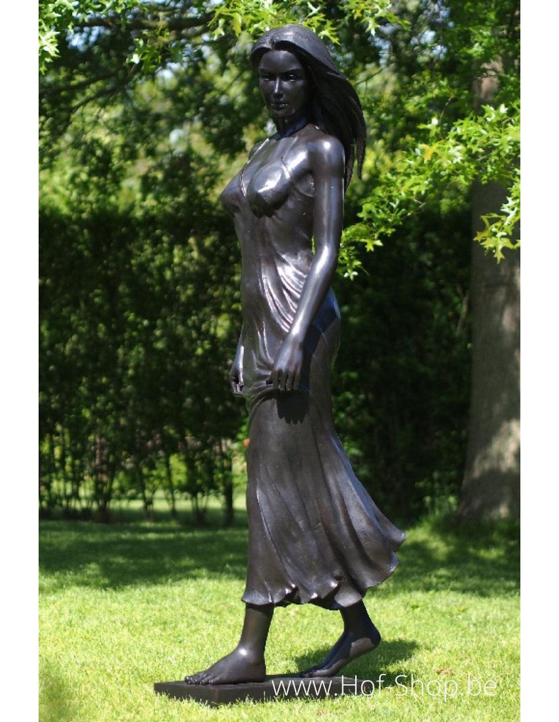 Belle sculpture en bronze d'une femme. Combinez-le avec un piédestal en pierre naturelle pour le mettre en valeur.