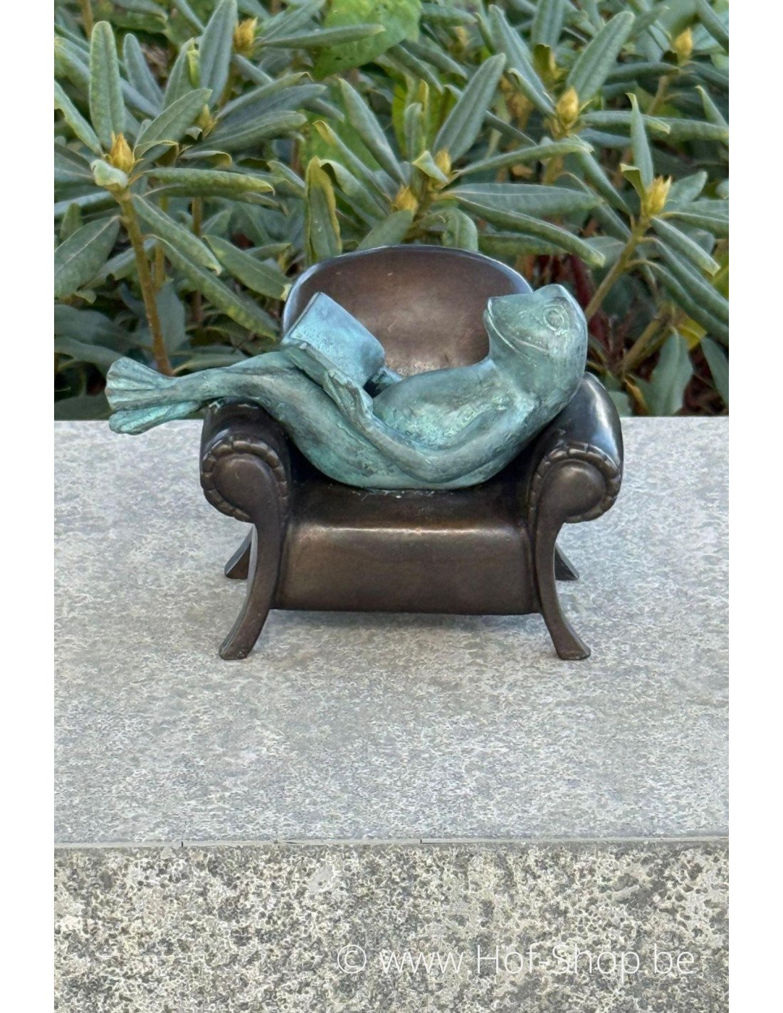 Grenouille lisant dans fauteuil - statue en bronze (AN1715BRW-V)