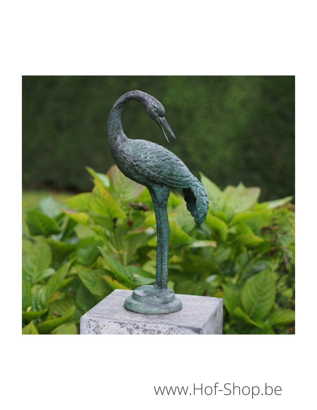 Cette figurine réaliste d'une grue est un joli accroche-regard dans n'importe quel jardin ou intérieur. Cet animal a une patine vert bronze.