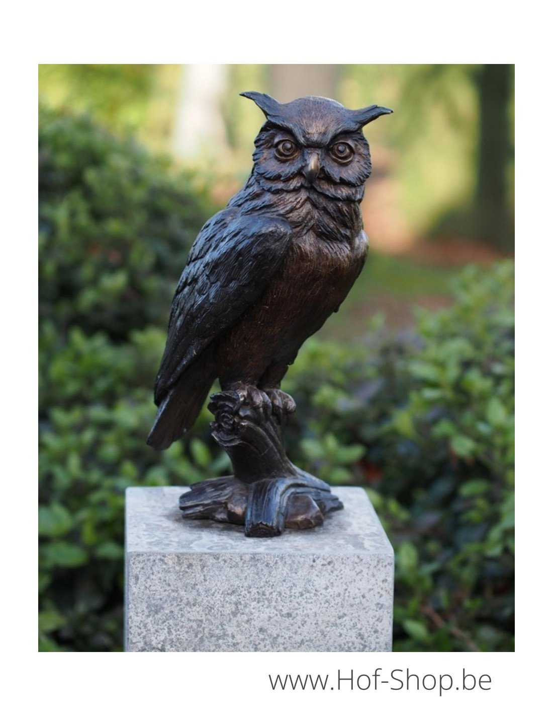 Cette statue moderne en bronze représentant un hibou sur le tronc est un élément magnifique dans n'importe quel jardin.