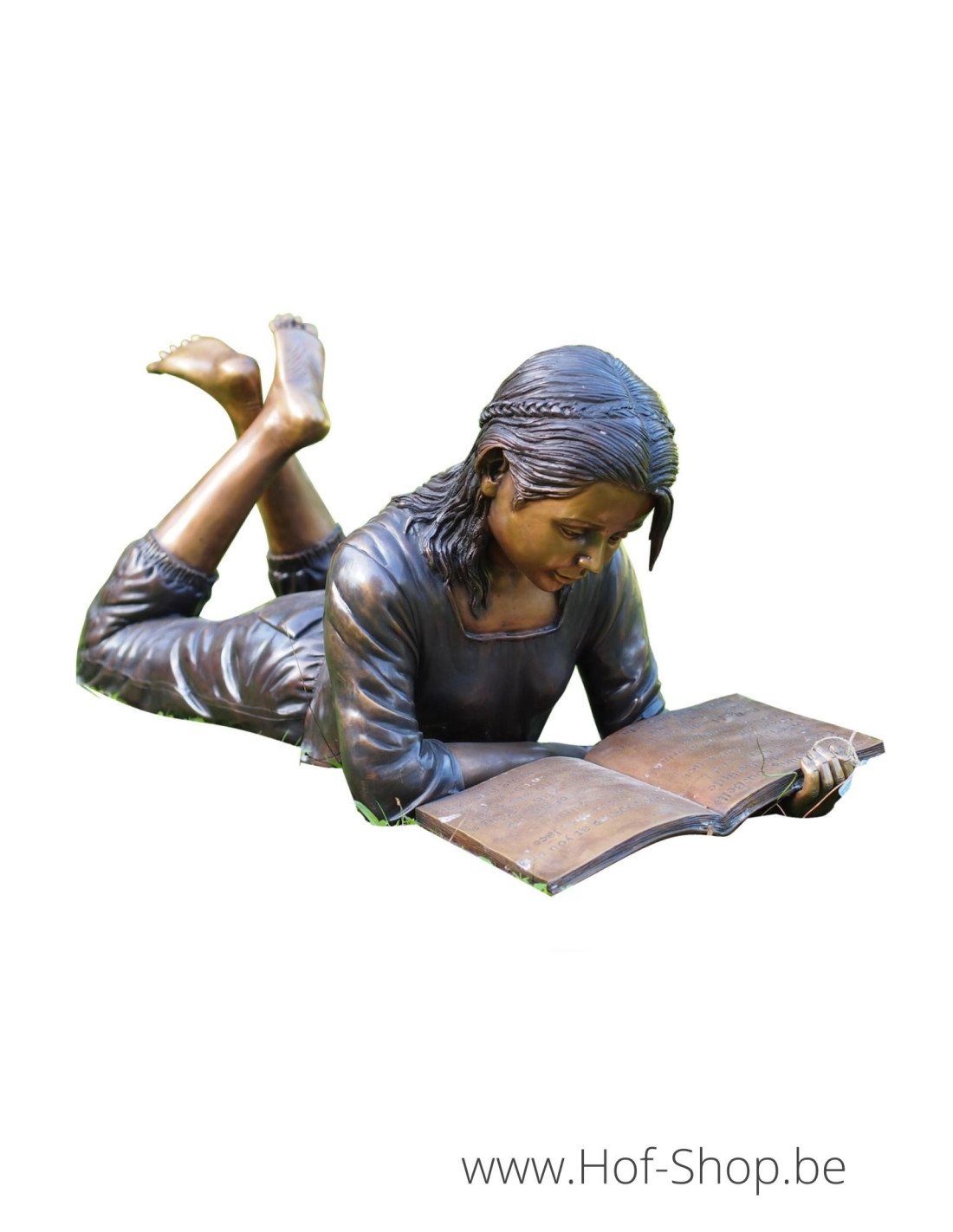 Jeune fille allongée lisant (petit modèle) - statue en bronze (B1224)