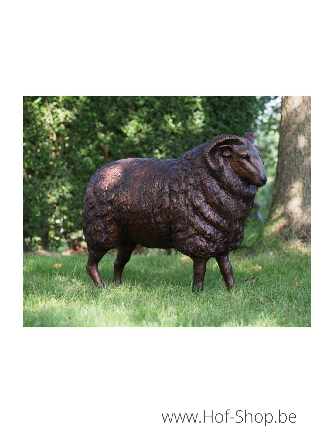 Magnifique mouton mâle en bronze. Une statue en bronze unique qui attire le regard dans le jardin.