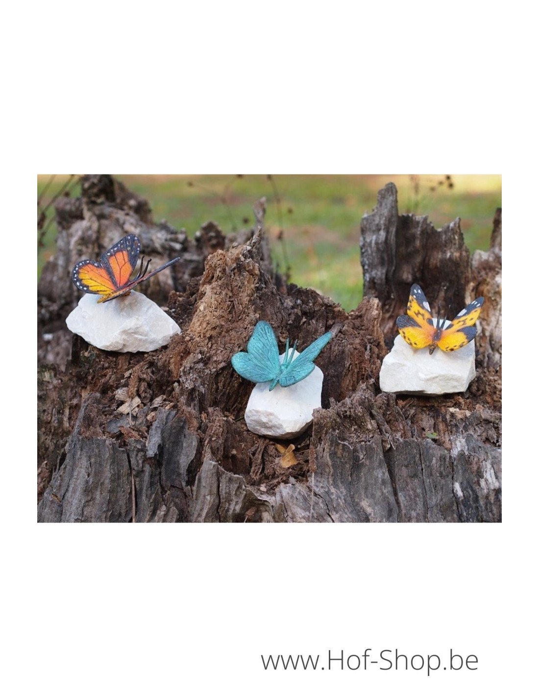 Papillon coloré sur pierre - statue en bronze (AN0748BR-P)