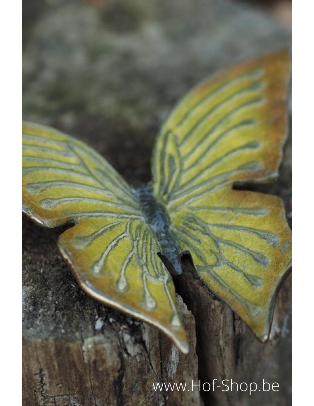 Unne belle statue de jardin en bronze représentant un papillon jaune. Ce papillon est fait d'une patine spéciale jaune bronze.