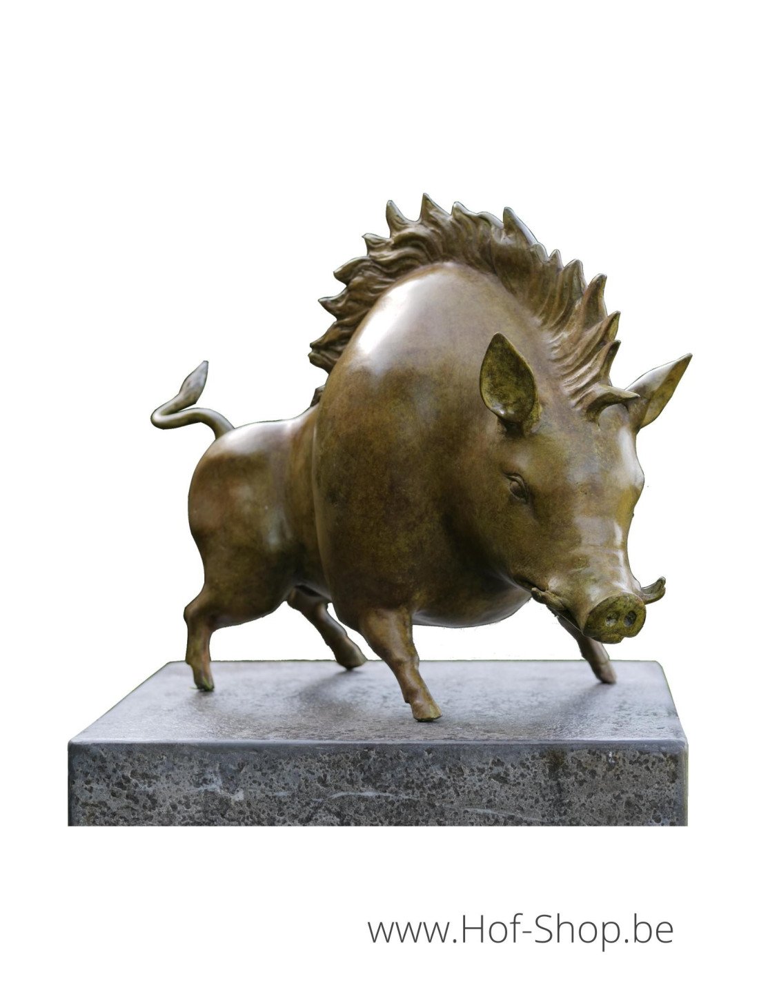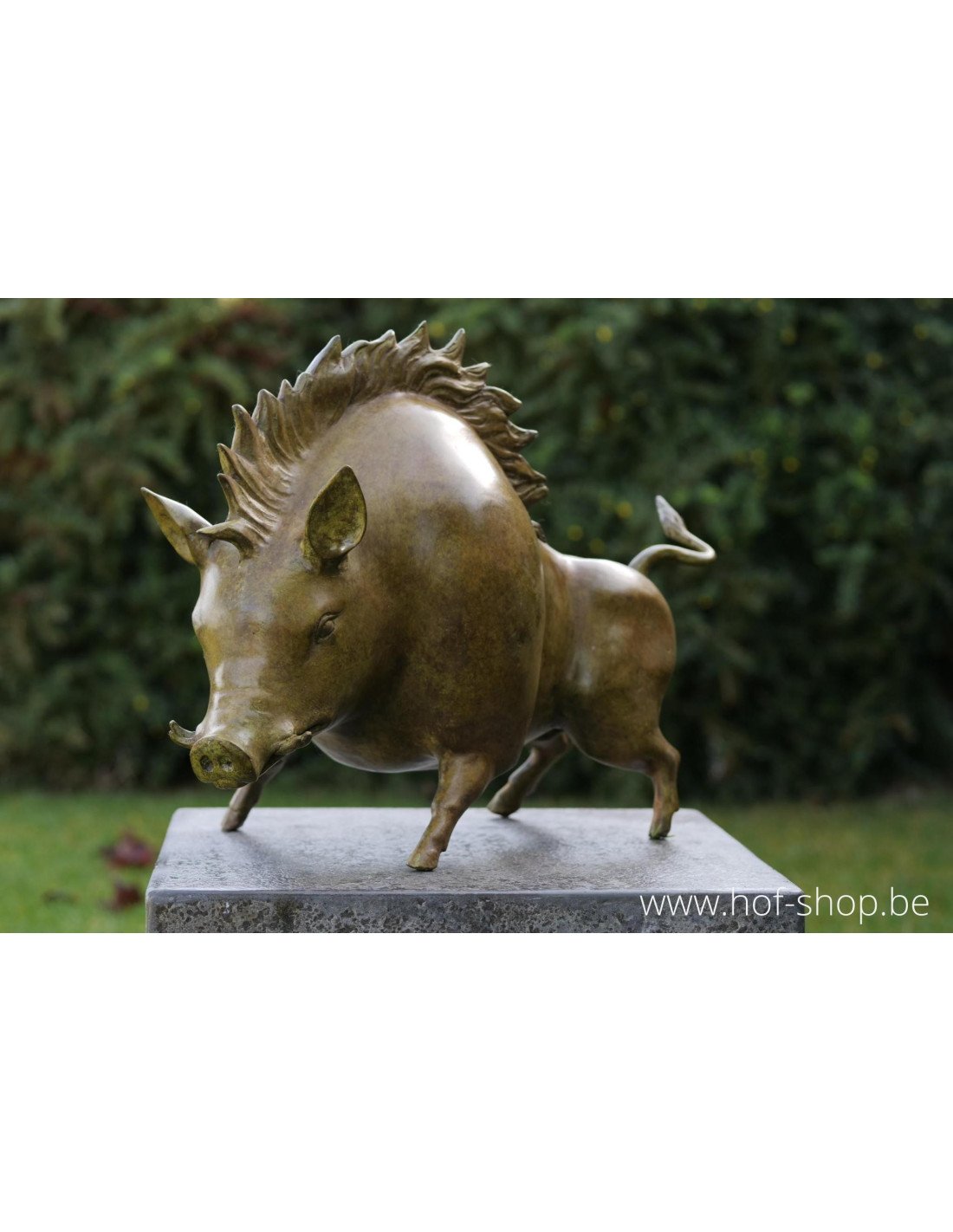 Cette figurine moderne de sanglier en position d'attaque est un joli accroche-regard dans n'importe quel jardin ou intérieur. Ce sanglier a une patine verte "chaude" spéciale. Un 'animal de spectacle' absolu !