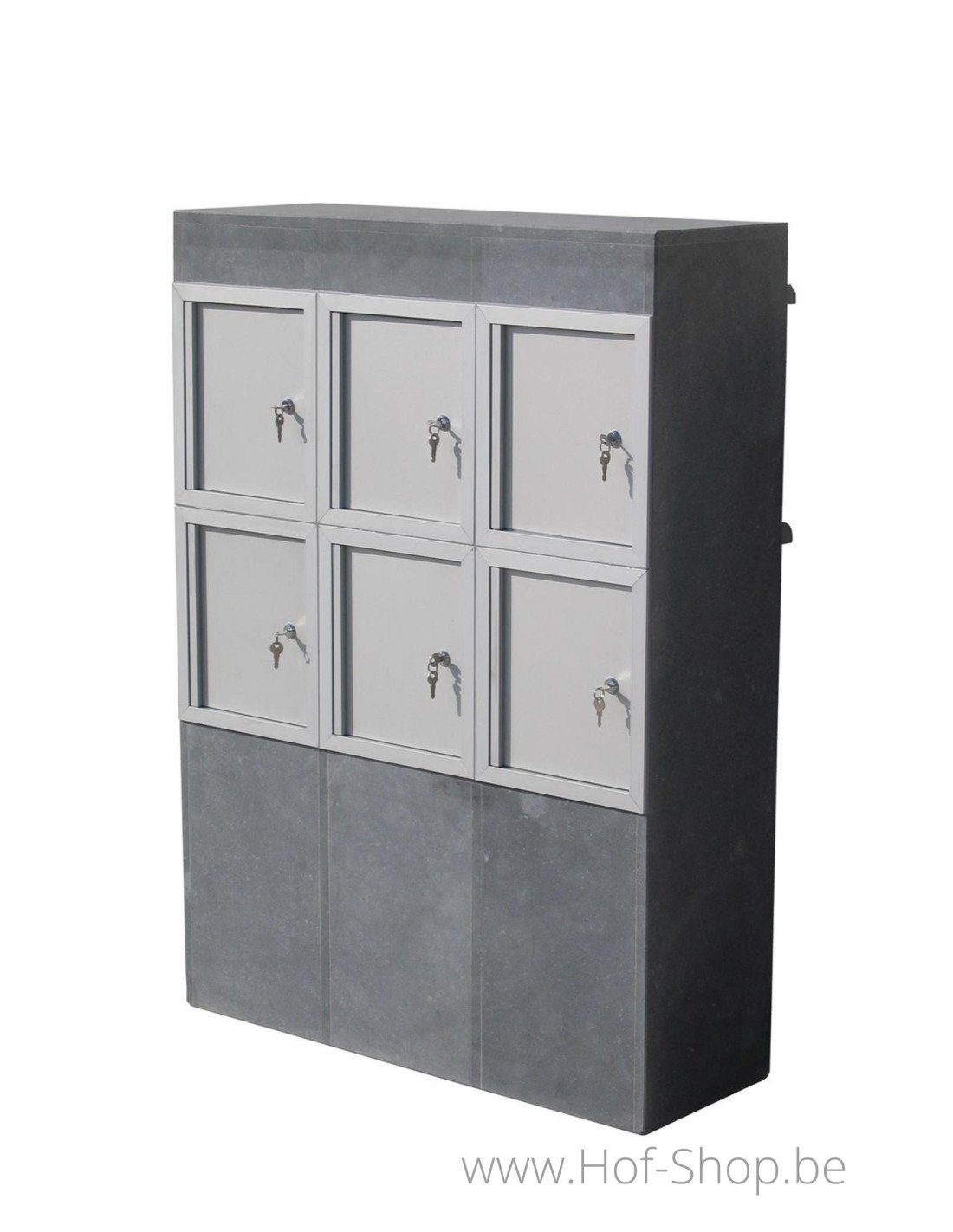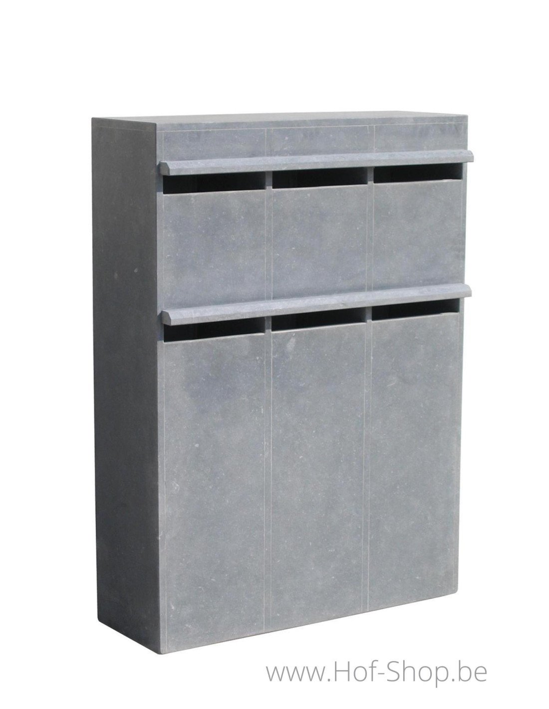 Valencia 6-box est une boîte aux lettres multiboxes élégante en pierre bleue belge. Cette boîte aux lettres autoportante se compose de six boîtes aux lettres distinctes.