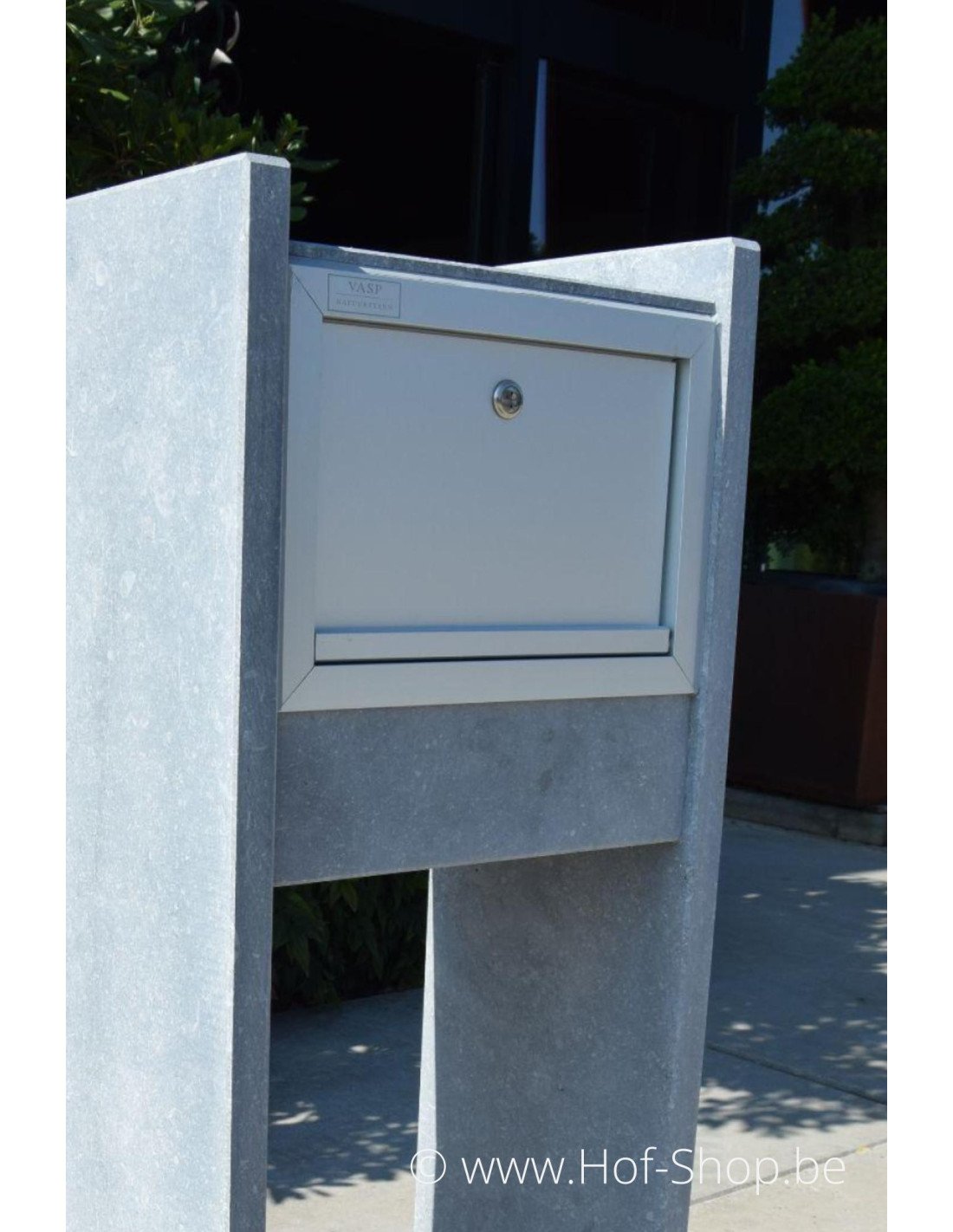 VASP produit des boîtes aux lettres de qualité supérieure ! La pierre naturelle utilisée est la pierre bleue belge. Cette pierre naturelle a une structure fermée et n'est donc pas poreuse. Un matériau idéal pour nos conditions climatiques.