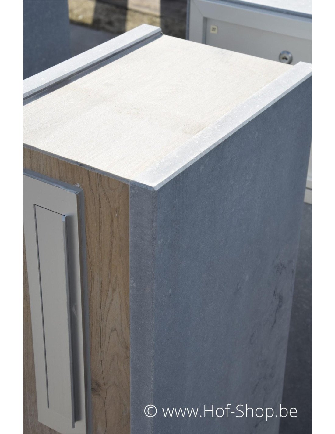 VASP produit des boîtes aux lettres de qualité supérieure ! La pierre naturelle utilisée est la pierre bleue belge. Cette pierre naturelle a une structure fermée et n'est donc pas poreuse. Un matériau idéal pour nos conditions climatiques.