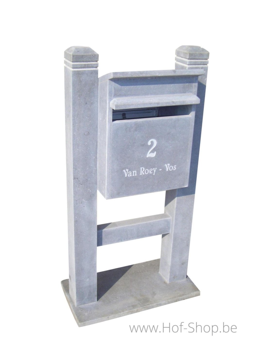 Cette boîte aux lettres autoportante en pierre naturelle V.R. a une belle finition. Elle est fabriquée en pierre bleue belge de haute qualité et est de plus fabriquée à la main en Belgique !