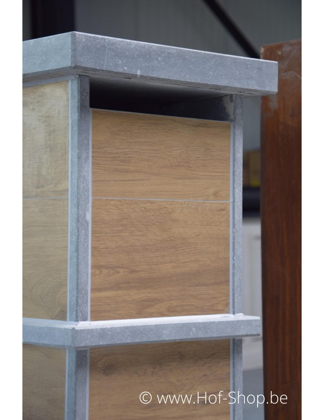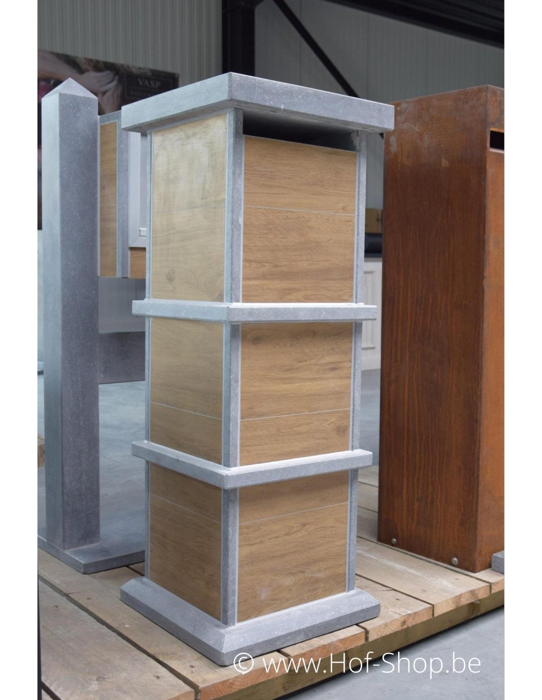 Les boîtes aux lettres en bois de VASP ne sont pas en bois, mais en céramique. En combinaison avec la pierre bleue belge, ces boîtes aux lettres Woodlook ont toujours l'aspect et la sensation d'une véritable boîte aux lettres en bois.
