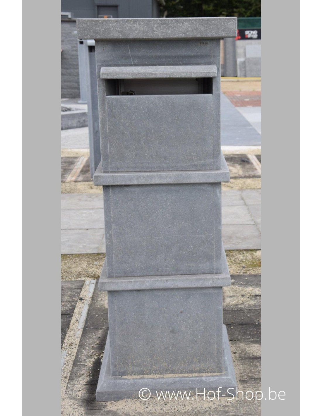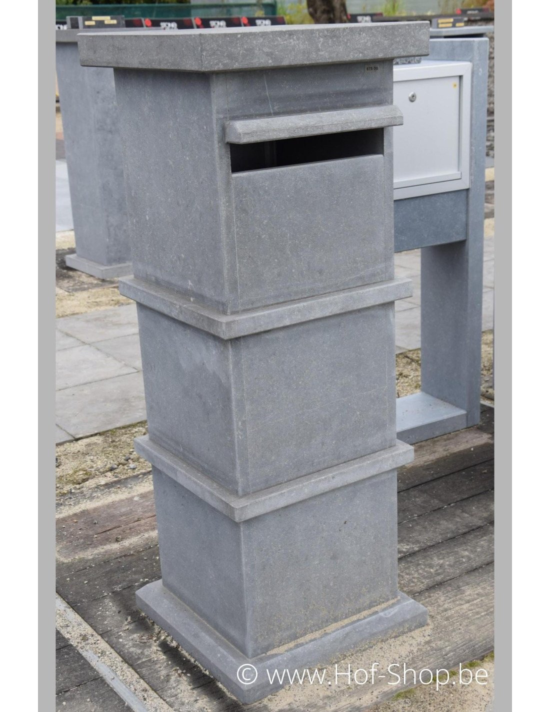 Pamplona est une boîte aux lettres unique et élégante en pierre bleue belge. La boîte aux lettres est si robuste qu'elle reste stable sans ancrage.