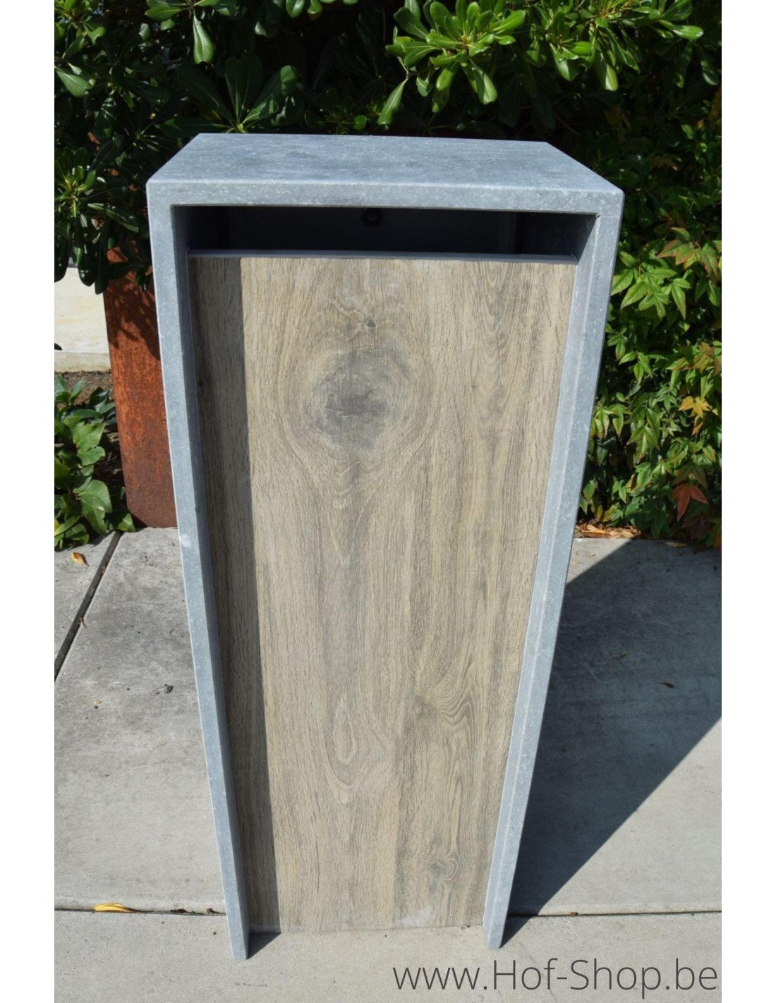 Cette boîte aux lettres à l'aspect bois n'est pas en bois, mais en céramique. En combinaison avec la pierre bleue belge, ces boîtes aux lettres Woodlook ont toujours l'aspect et la sensation d'une véritable boîte aux lettres en bois.