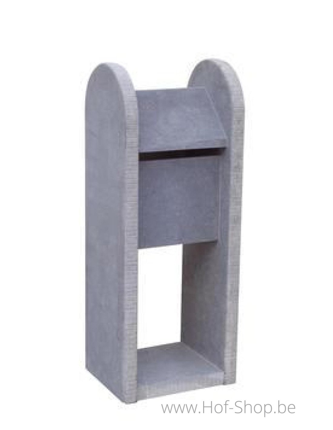 Zaragoza est une élégante boîte aux lettres en pierre bleue belge avec des «joues» rondes. Il s'intègre parfaitement dans une maison classique et traditionnelle. Le devant en retrait offre une protection supplémentaire contre la pluie.