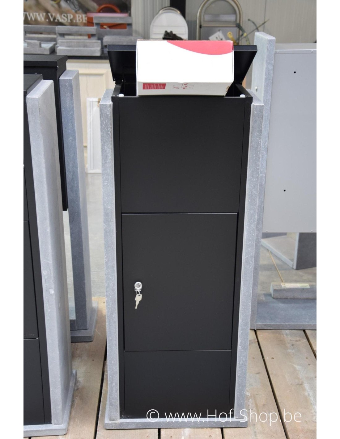 La boîte aux lettres pour colis est conçue de manière à ce que votre courrier soit protégé contre le vol (votre courrier tombe et lorsque le rabat est ouvert ensuite, un autre rabat se ferme de manière à ce que le courrier déjà déposé soit enfermé).