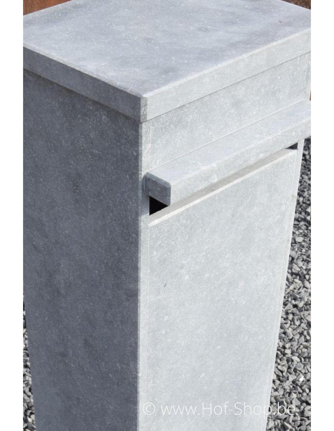 VASP produit des boîtes aux lettres de qualité supérieure ! La pierre naturelle utilisée est la pierre bleue belge. Cette pierre naturelle a une structure fermée et n'est donc pas poreuse. Un matériau idéal pour nos conditions climatiques.