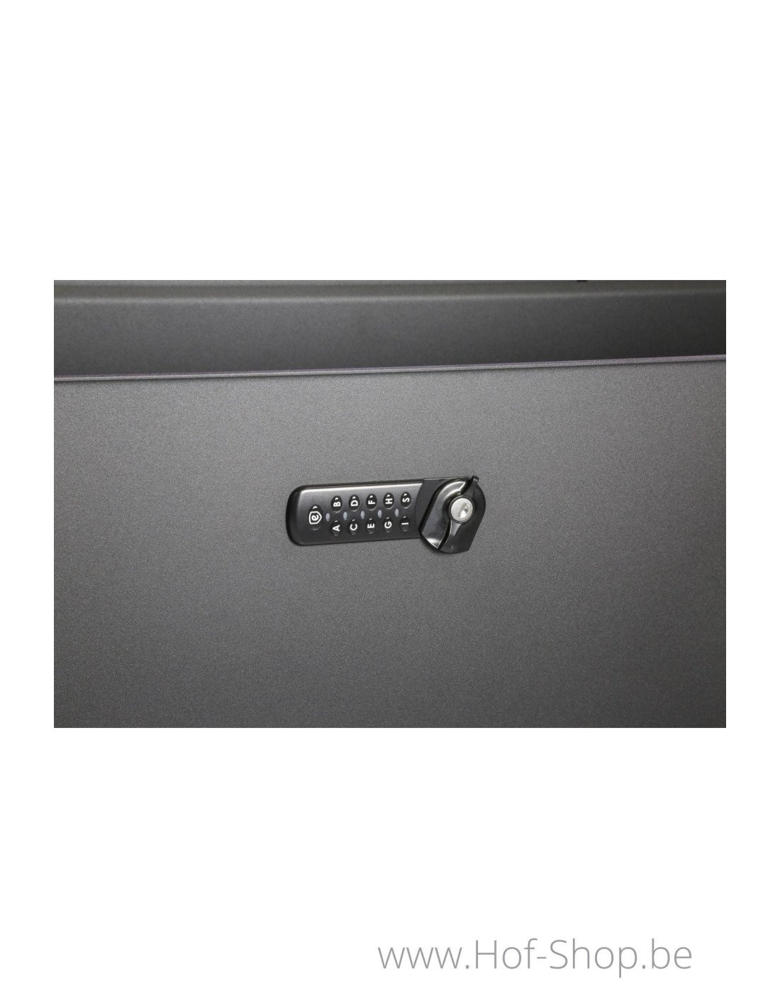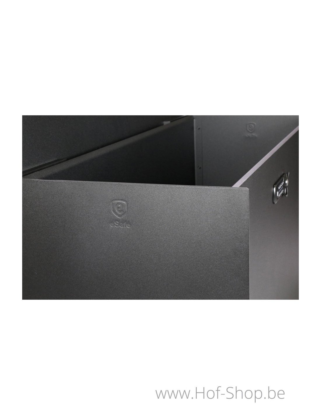 La boîte aux lettres est fabriquée en aluminium inoxydable (3 mm d'épaisseur) avec une peinture texturée de haute qualité (mat 9005 TXT noir). Les boîtes aux lettres eSafe sont testées et approuvées par Bpost! Toutes les couleurs RAL sont possibles. Il suffit de nous le demander.
