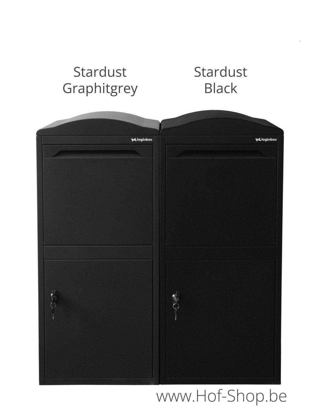 Cette boîte aux lettres est fabriquée en tôle d'acier avec un revêtement en poudre durable. Disponible en deux couleurs en standard : Stardust Black et Stardust Graphitgrey. Unique à ce revêtement sont les petites particules métalliques qui fournissent un petit miroitement, ce qui donne un aspect luxueux.