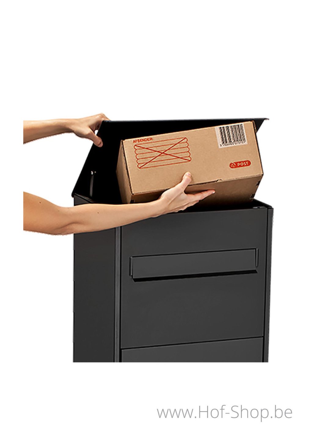 La boîte à colis MEFA Oak est une boîte à colis très spacieuse. MEFA Oak est fabriqué en acier galvanisé de 1 mm. La couleur est la structure noire ral 9005. Cette boîte aux lettres élégante a une capacité de 127 litres.