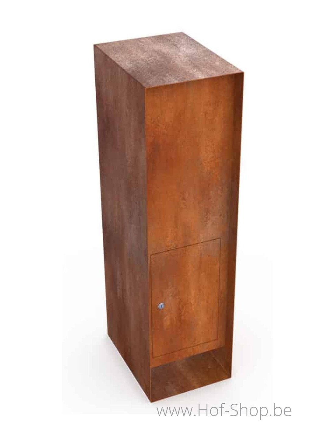Pakun est une boîte à colis en acier corten de la marque belge Geroba. Les colis et le courrier sont livrés en toute sécurité via le rabat en haut. Grâce à la porte à l'arrière, vous n'avez pas à remonter le trottoir pour vider votre bus. Avec le Pakun en acier corten, Geroba a réussi à créer une boîte aux lettres au design épuré qui s'intègre aussi bien dans une maison moderne que traditionnelle. Une boîte aux lettres unique qui donne à votre maison et/ou votre jardin un petit plus.