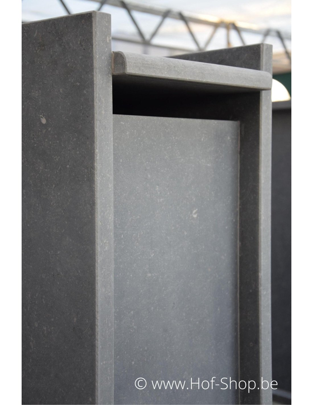 VASP produit des boîtes aux lettres de qualité supérieure ! La pierre naturelle utilisée est la pierre bleue belge. Cette pierre naturelle a une structure fermée et n'est donc pas poreuse. Un matériau idéal pour nos conditions climatiques.