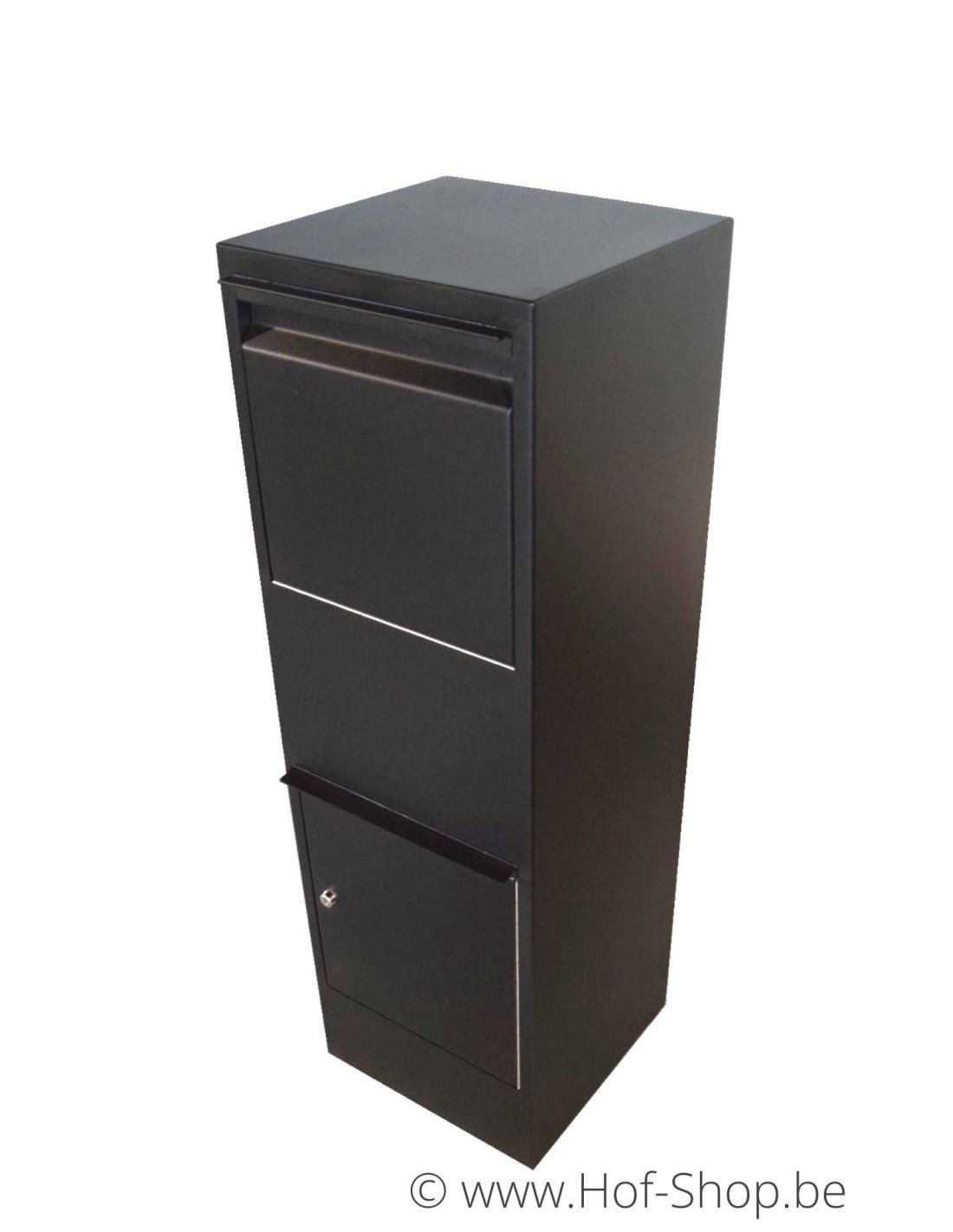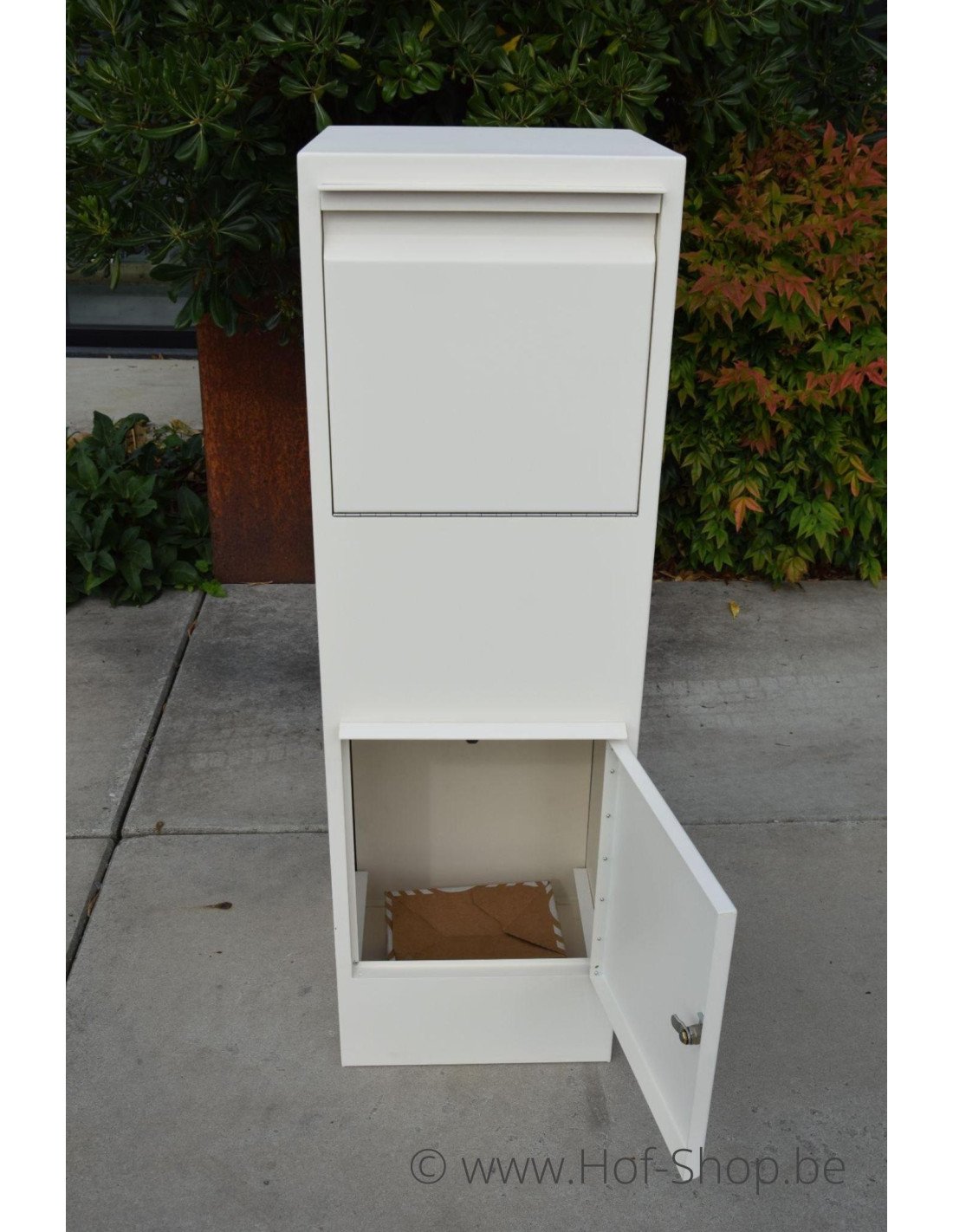 Cette boîte aux lettres Larob possède un rabat à l'avant pouvant accueillir aussi bien du courrier que des colis. Une fois le colis inséré, il ne peut pas être retiré par des personnes non autorisées via la trappe.