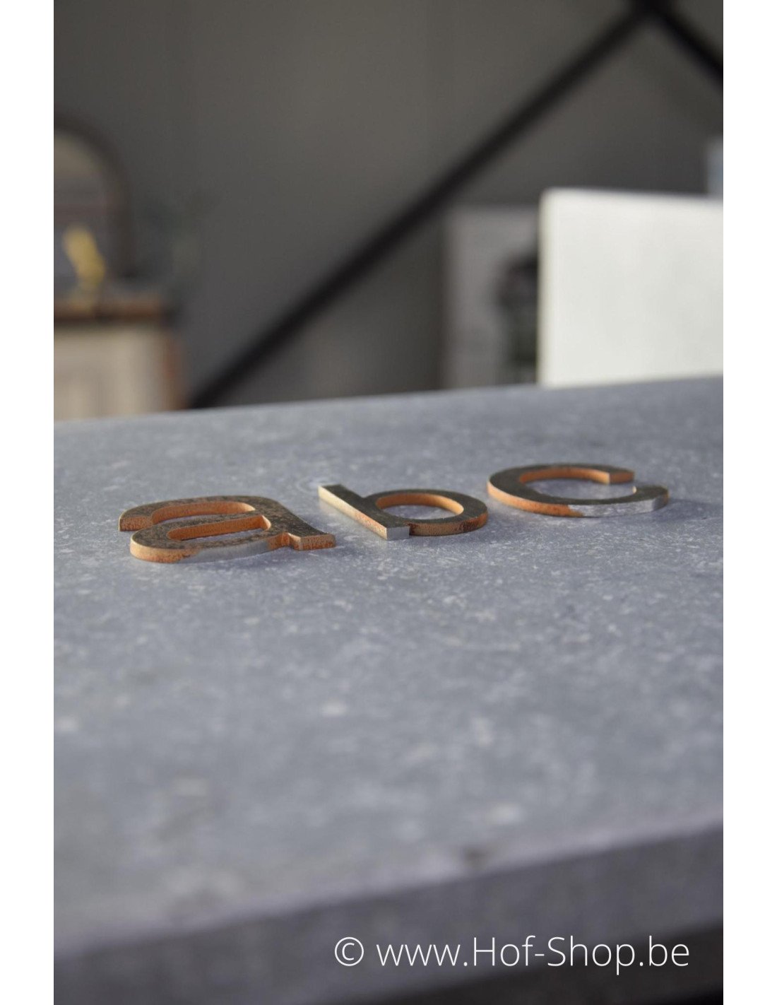Lettre en acier Corten, de 5 cm de haut et de 3 mm d'épaisseur.