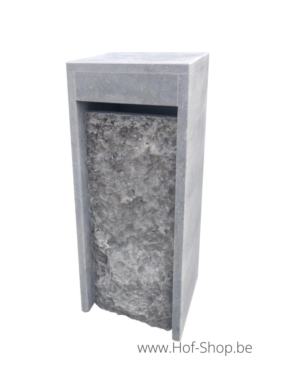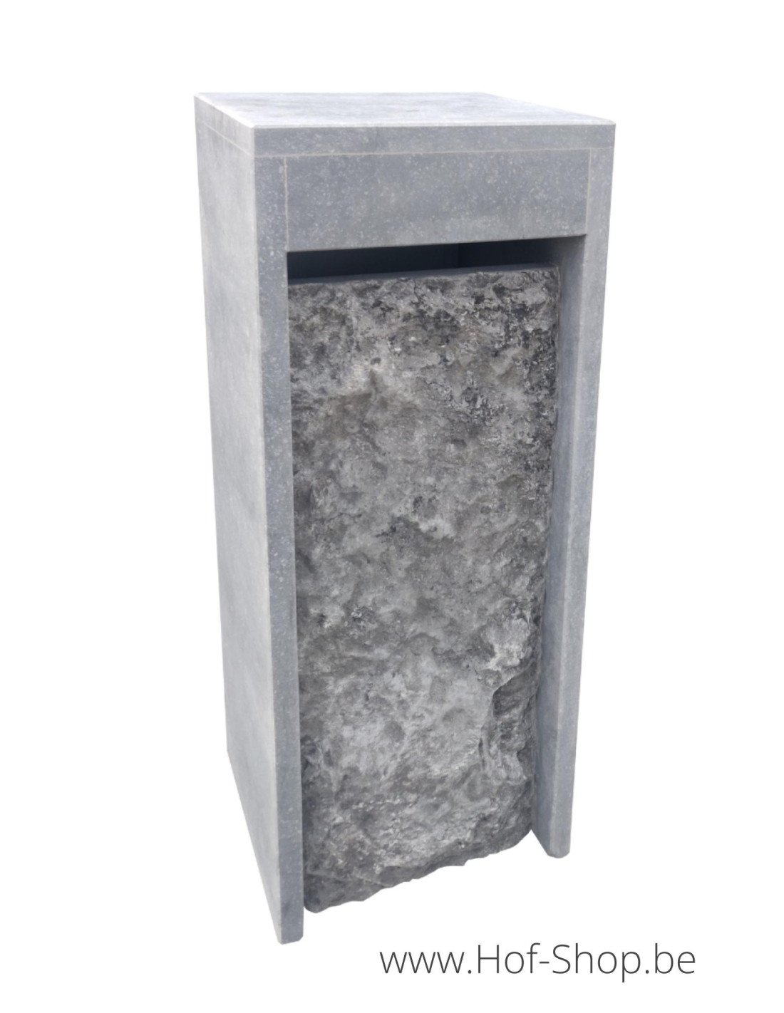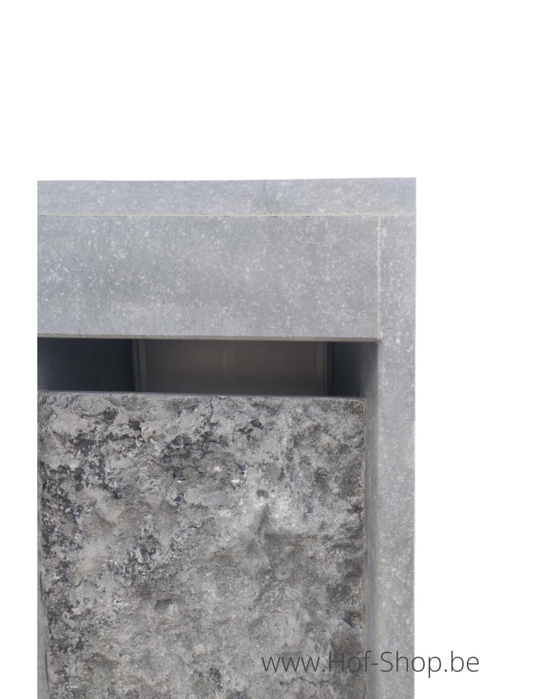 Het front is een brute arduin en geeft de brievenbus een unieke uitstraling.