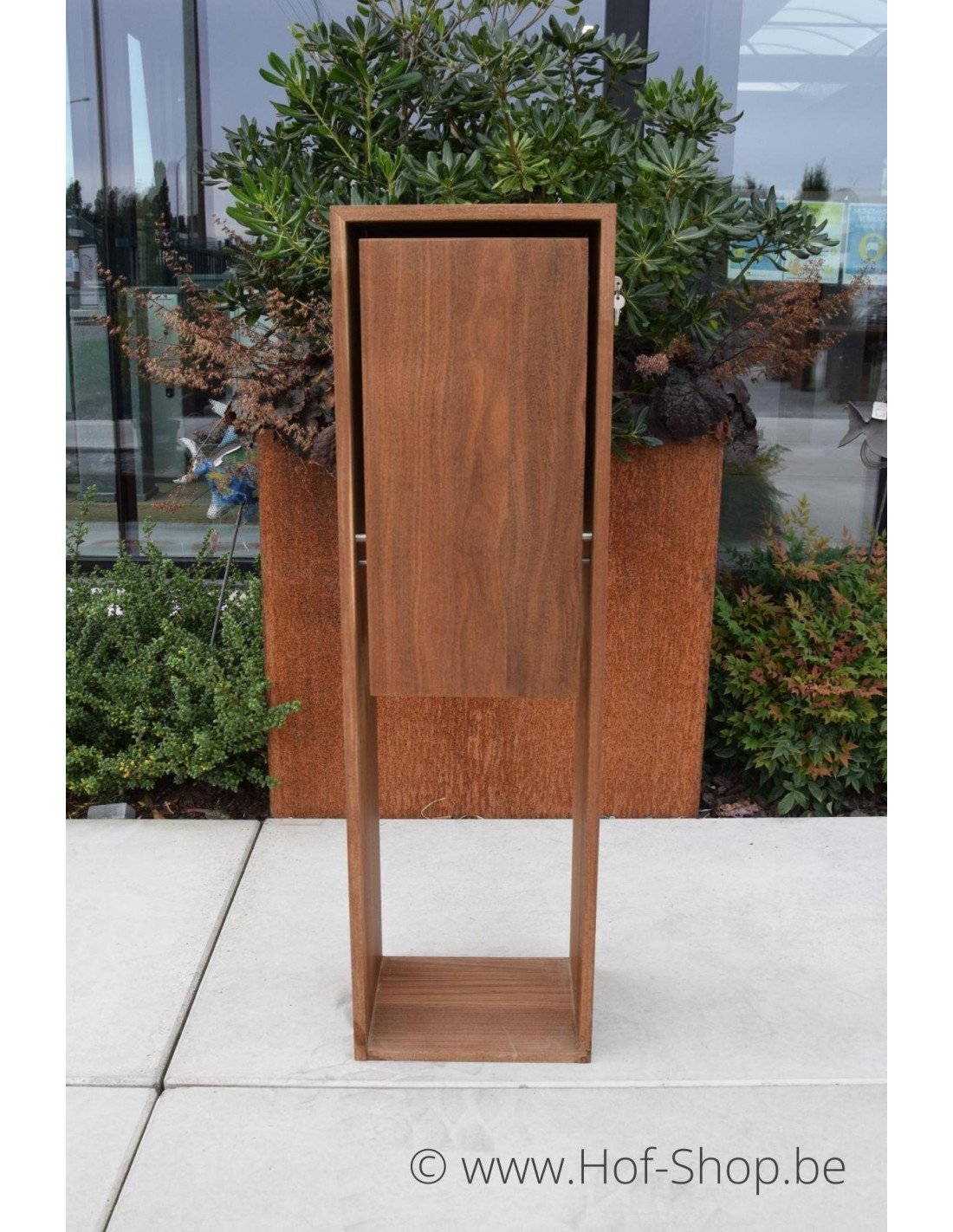 Deze exclusieve design brievenbus 'Archi Teak' van Kato heeft een voet en voorplaat uit teak. Er zijn 4 inox schroeven en pluggen bij om de brievenbus te verankeren in de grond.