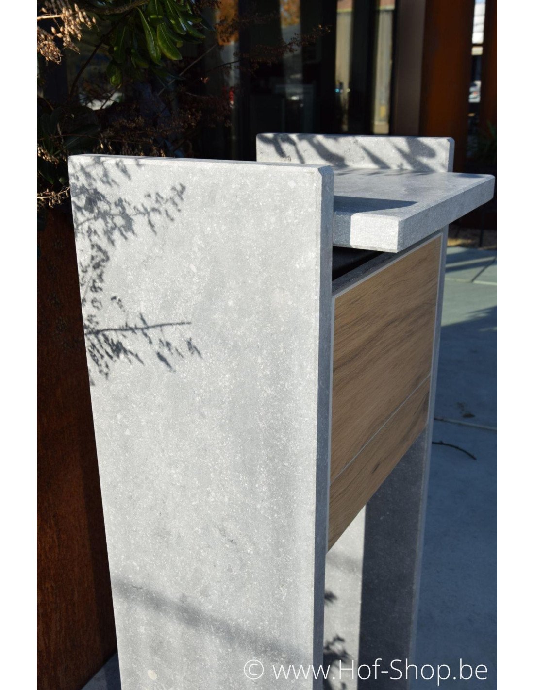 Deze klassevolle brievenbus Everest in Belgische blauwe hardsteen geeft een mooie toets aan de woning. Everest is zodanig stevig dat ze stabiel staat zonder verankering. Wilt u ze toch extra verstevigen, dan kan dat door ze te verankeren in de grond via een betonnen sokkel. Het front is een keramische tegel met houtlook. Het uitzicht is amper te onderscheiden van echt hout.