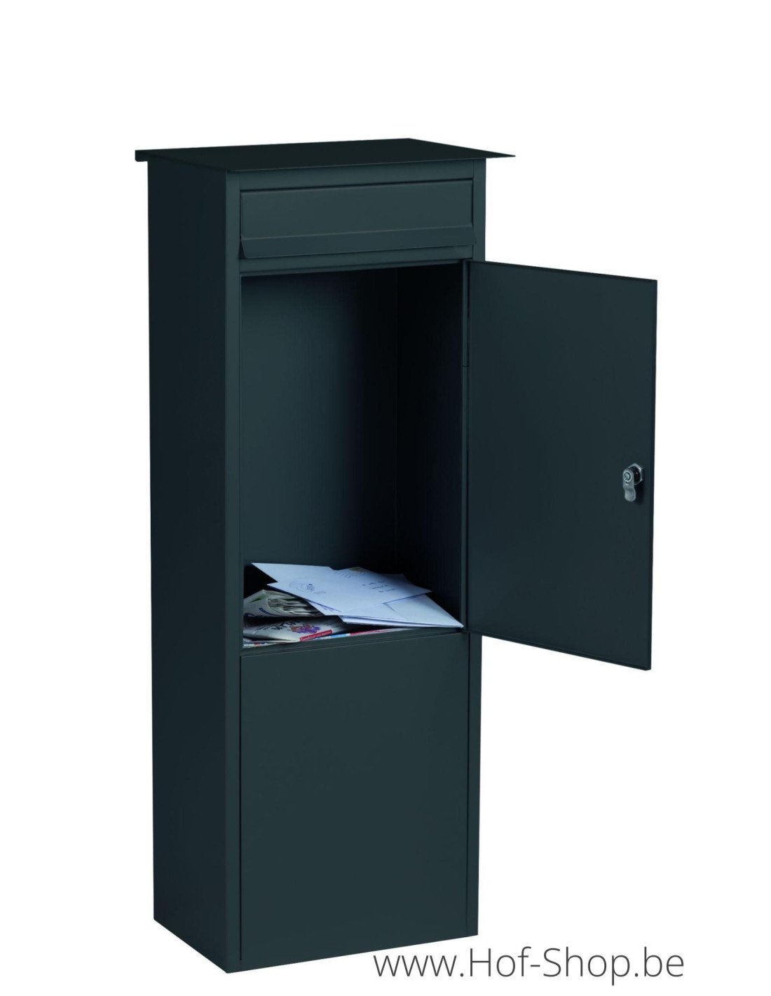 Deze zwarte brievenbus 'Frankfurt' is een eenvoudig en tijdloos model. De lak is een structuurlak.