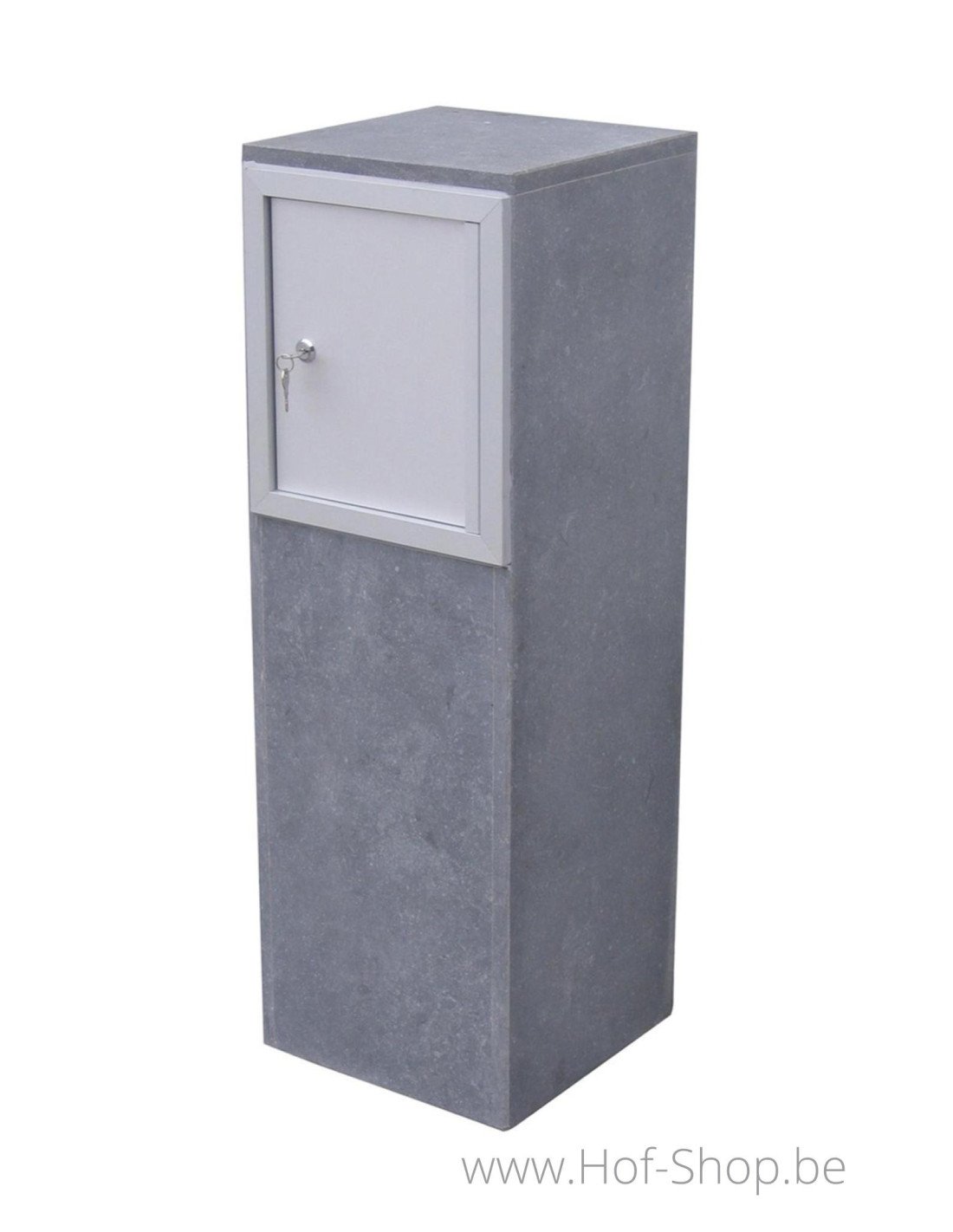 Deze minimalistische, rechte brievenbus Gijon in Belgische blauwe hardsteen is strak, functioneel en kubistisch.