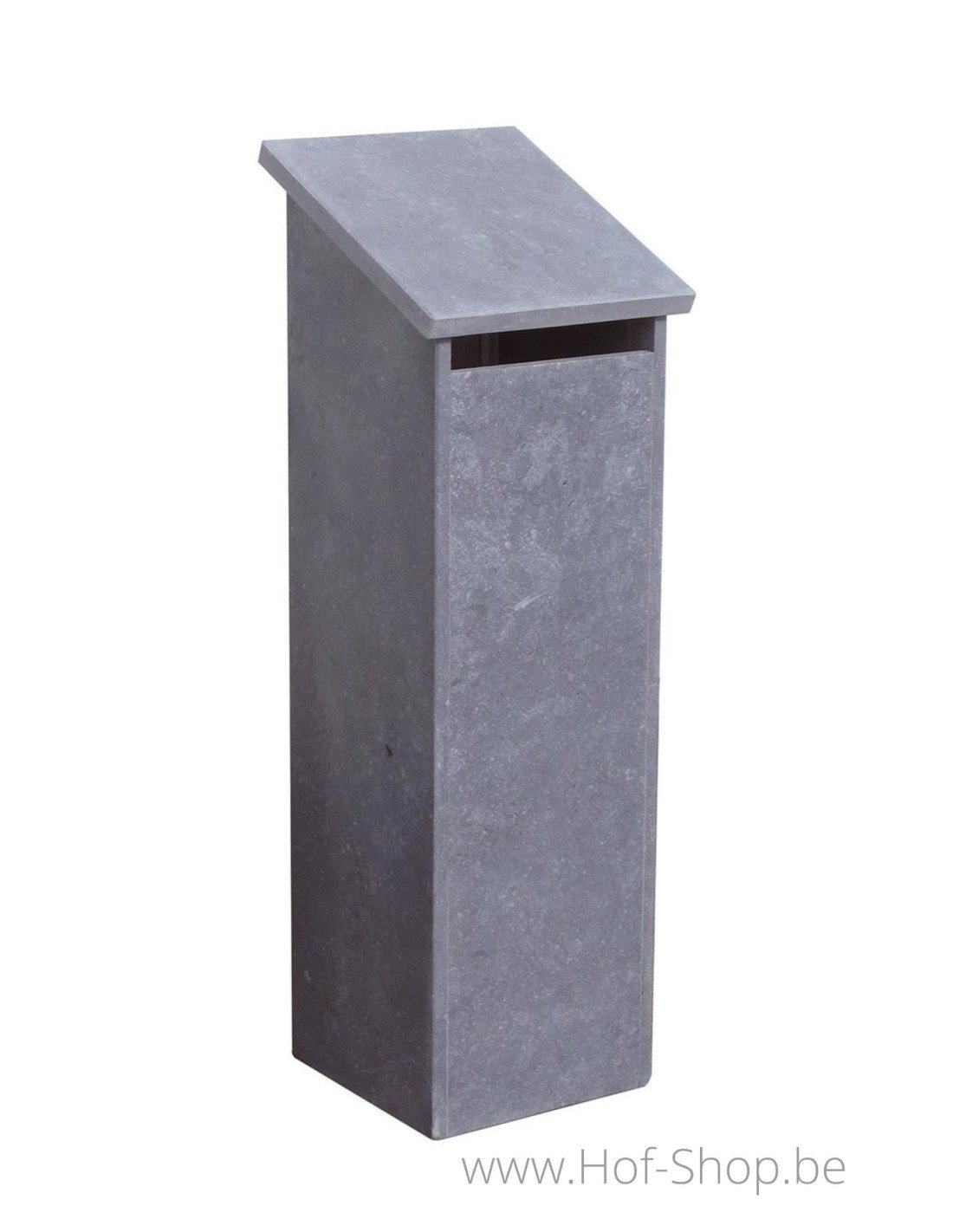 Deze eenvoudige brievenbus Marbella in Belgische blauwe hardsteen geeft een mooie toets aan de woning. Het schuin afhellende dak geeft een unieke uitstraling aan de brievenbus.