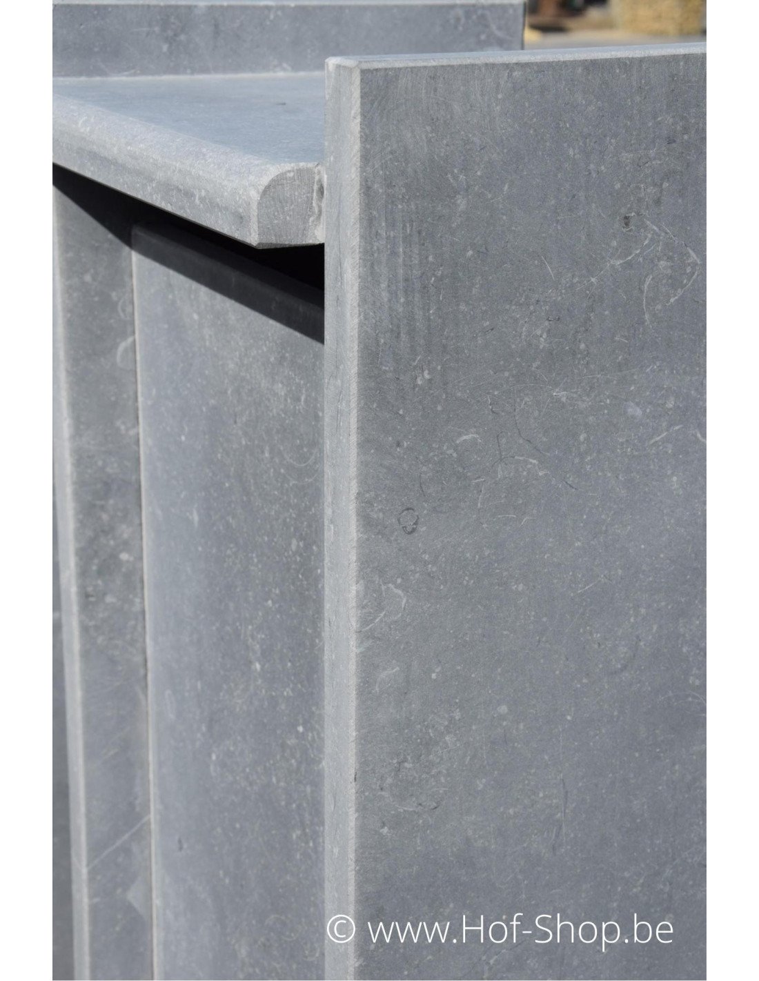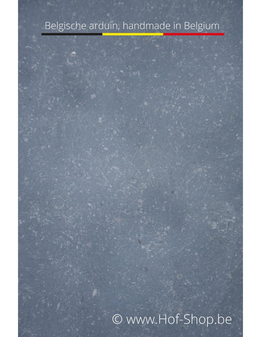 De gebruikte natuursteen is Belgische arduin. Deze natuursteen heeft een gesloten structuur en is dus niet poreus. Een ideaal materiaal dus voor onze weersomstandigheden.