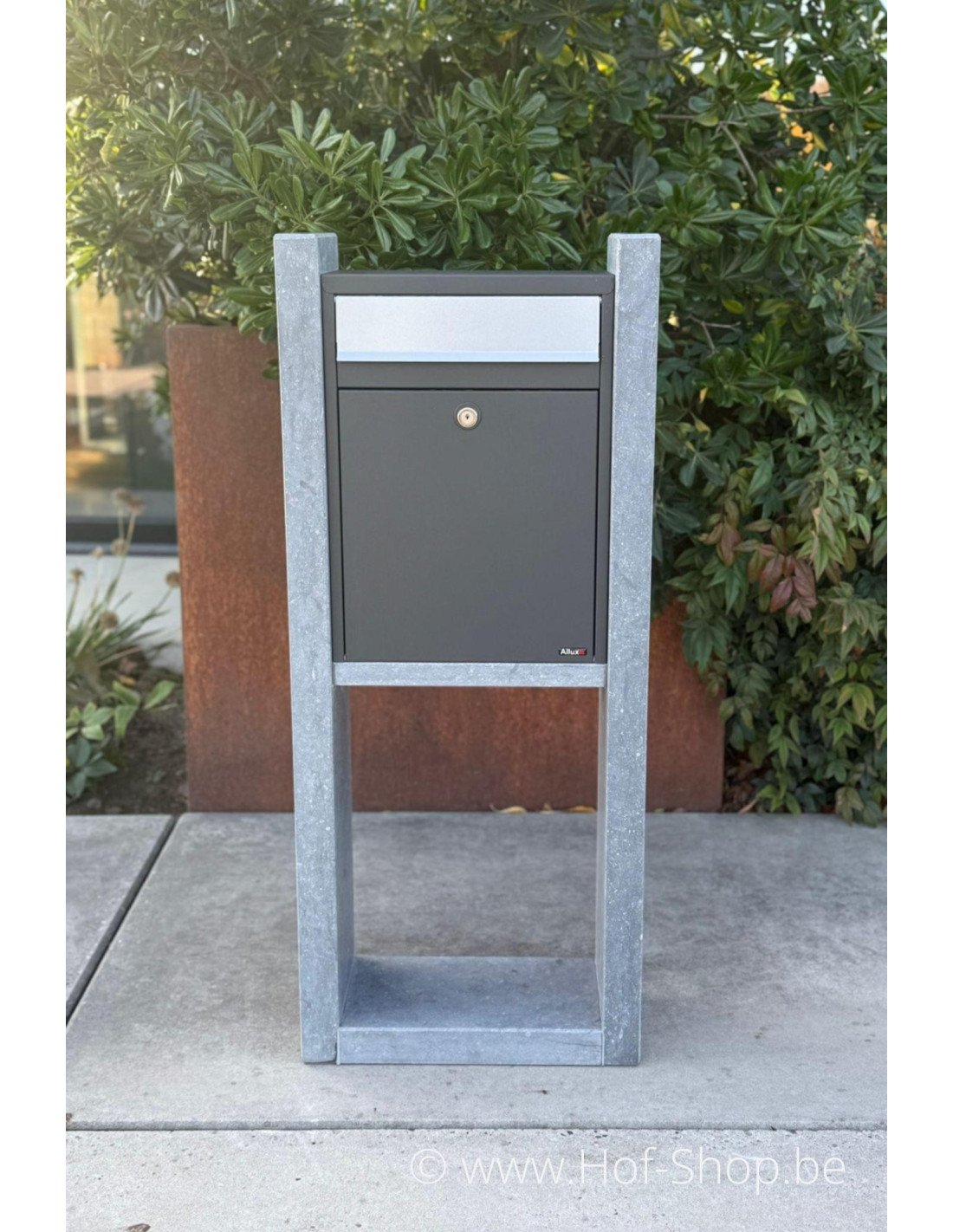 Vigo is een stijlvolle brievenbus in Belgische blauwe hardsteen gecombineerd met een bus uit gepoederlakt staal. Doordat de brievenbus niet zo diep is én het deurtje vooraan is, is Vigo ideaal indien u beperkt in ruimte bent!